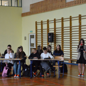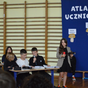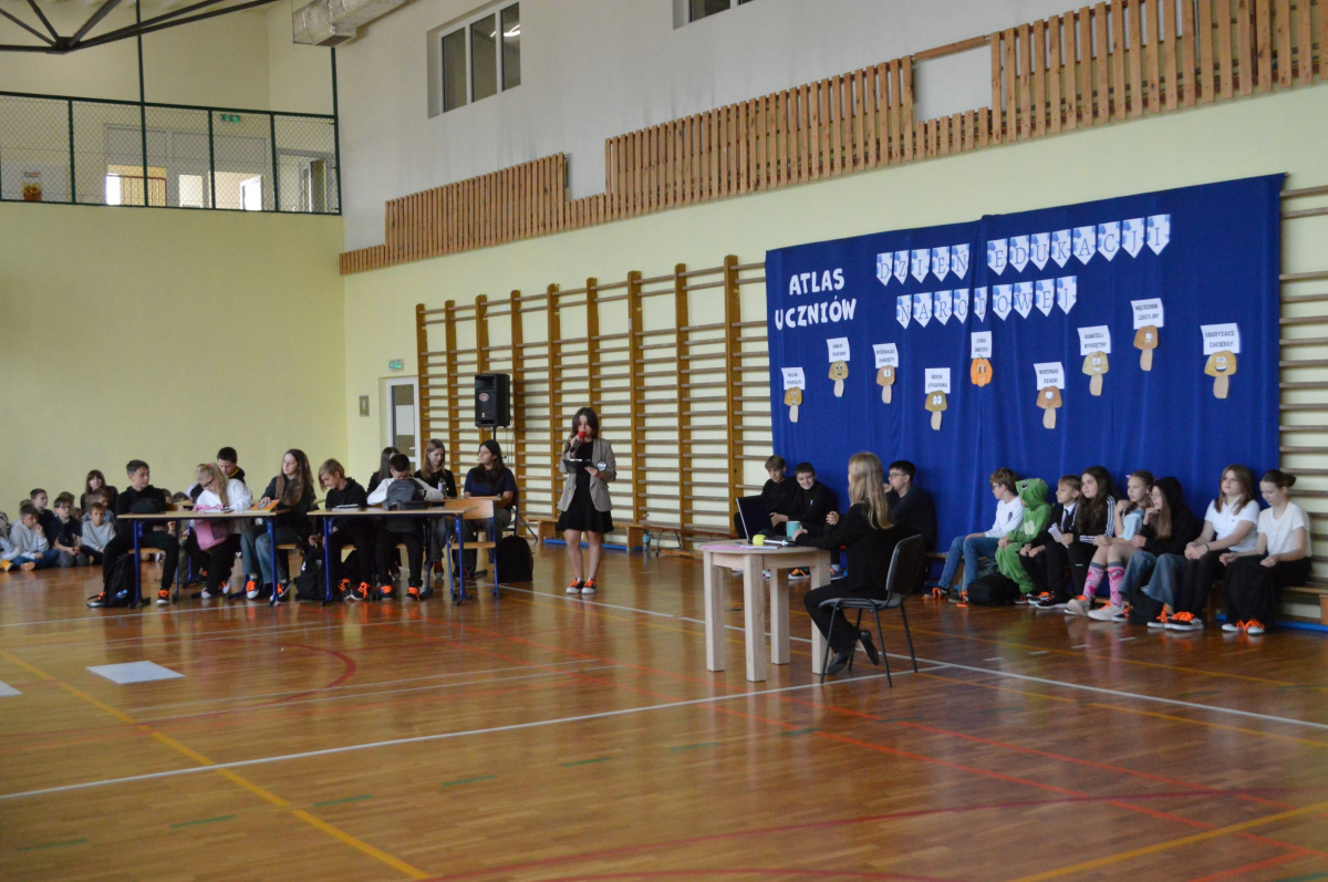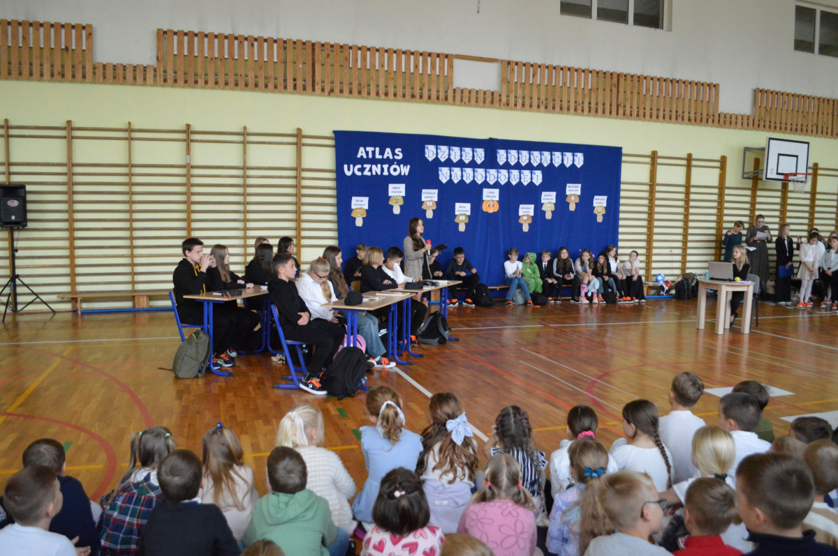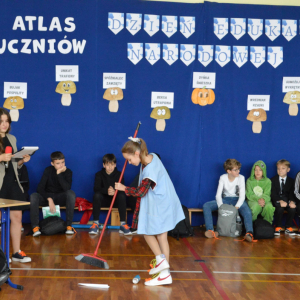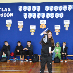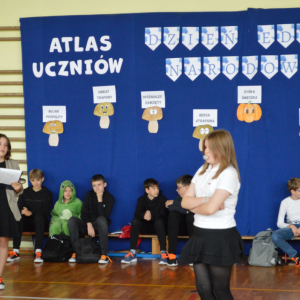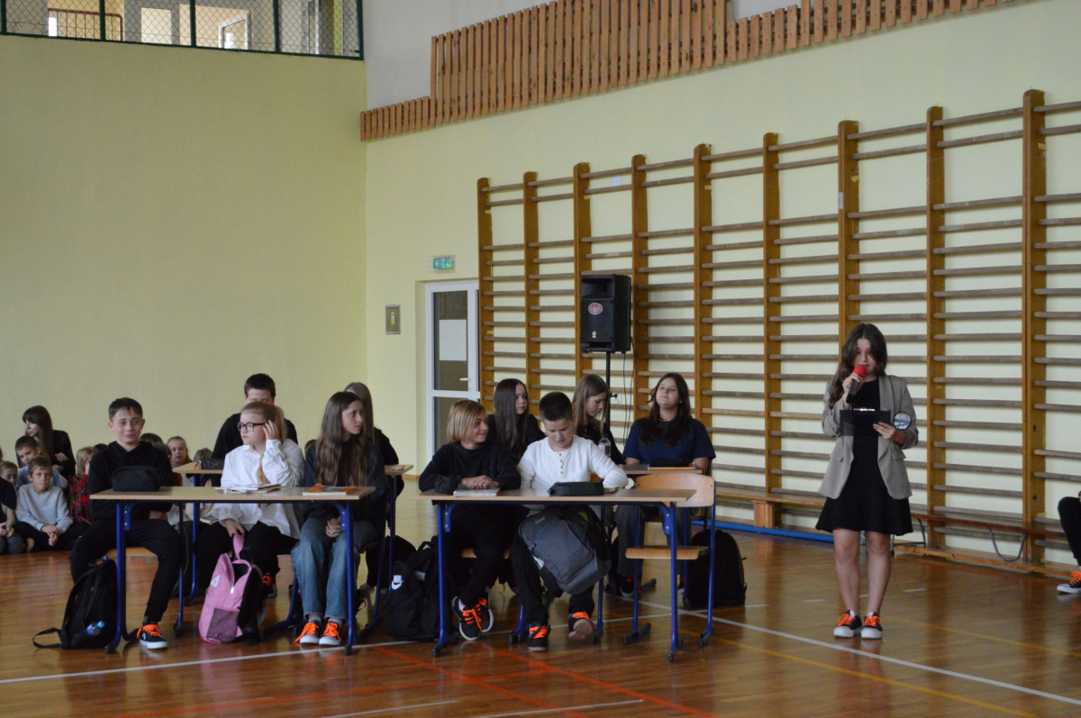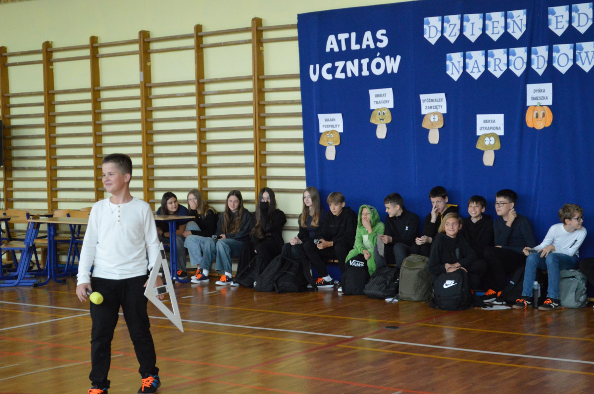 13 października 2025r. w naszej szkole odbyło się niecodzienne przedstawienie z okazji Dnia Edukacji Narodowej. Uczniowie klasy 7a zaprosili widownię do…”lasu” pełnego…uczniów! W zabawny sposób przedstawione zostały najpopularniejsze typy uczniów, jak na przykład Obgryzacz Zaciekły, Maruda Lekcyjna, Bujak Pospolity, Pracuś Szlachetny, Spóźnialec Zawzięty czy też Wszystkoposiadacz Niepospolity. Przedstawienie zostało dopełnione przez taniec w wykonaniu chłopców a także skecz „Z życia pokoju nauczycielskiego” oraz występ szkolnego chóru. Popłynęło kilka łez, na szczęście ze śmiechu!