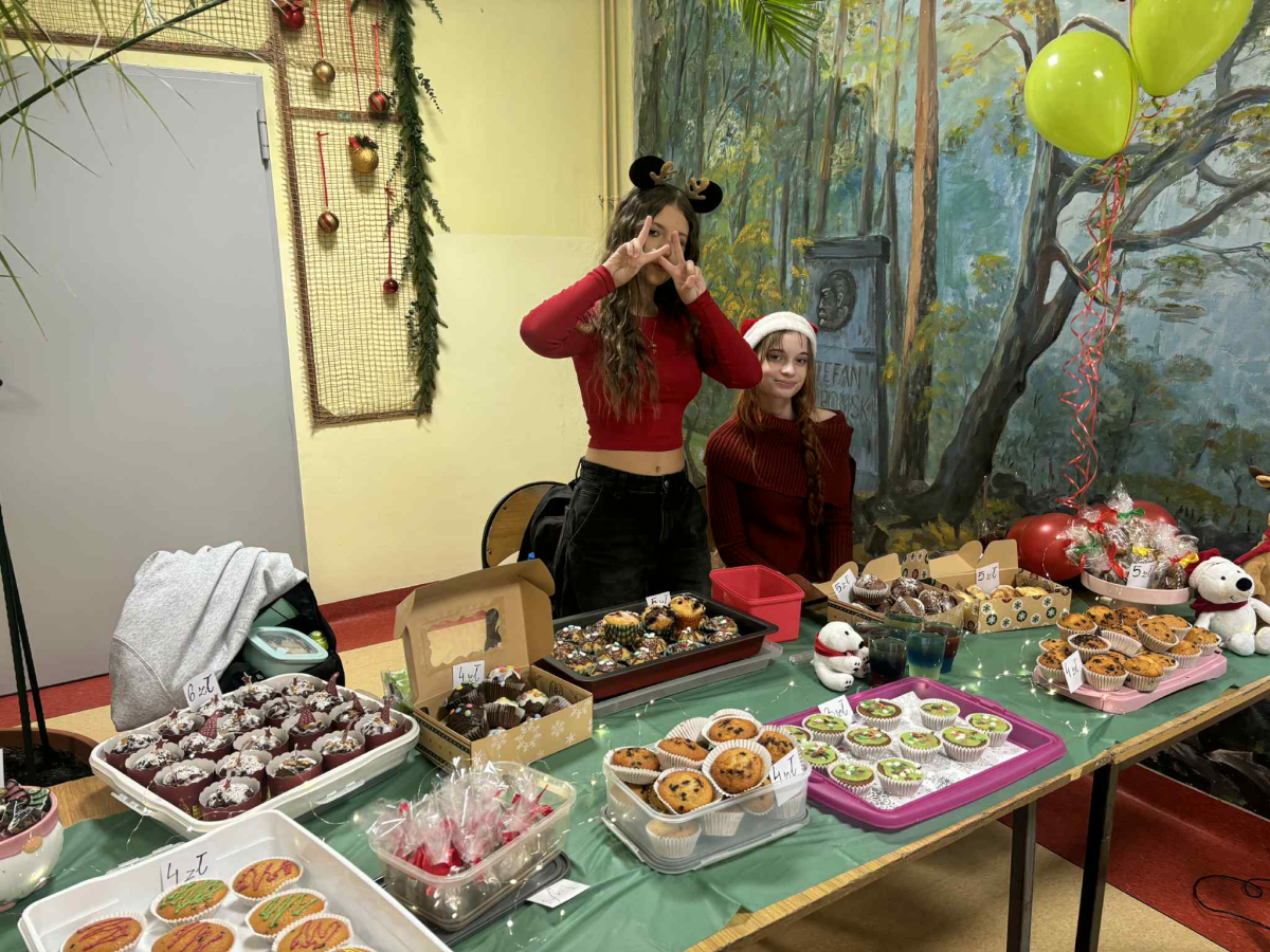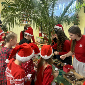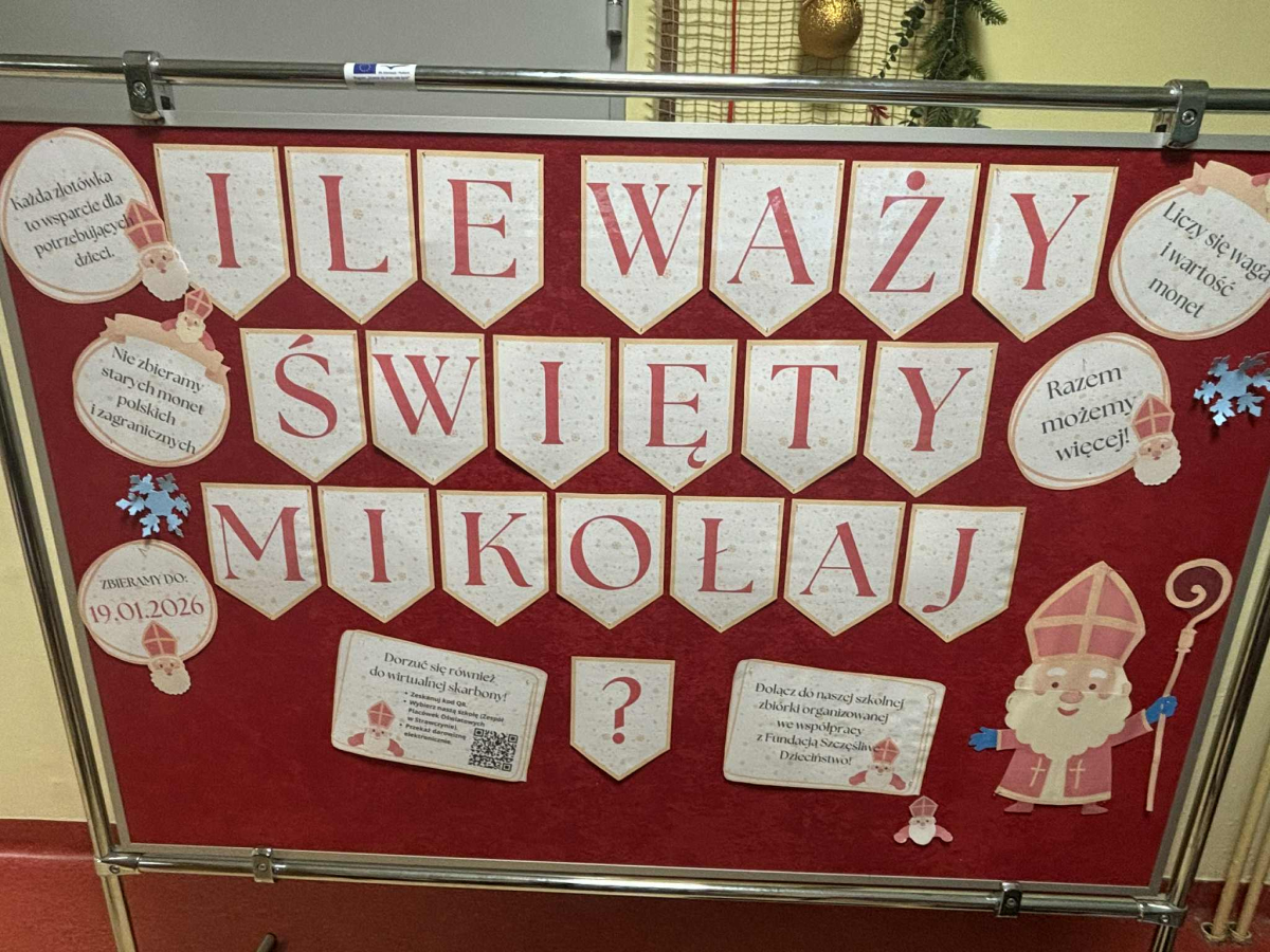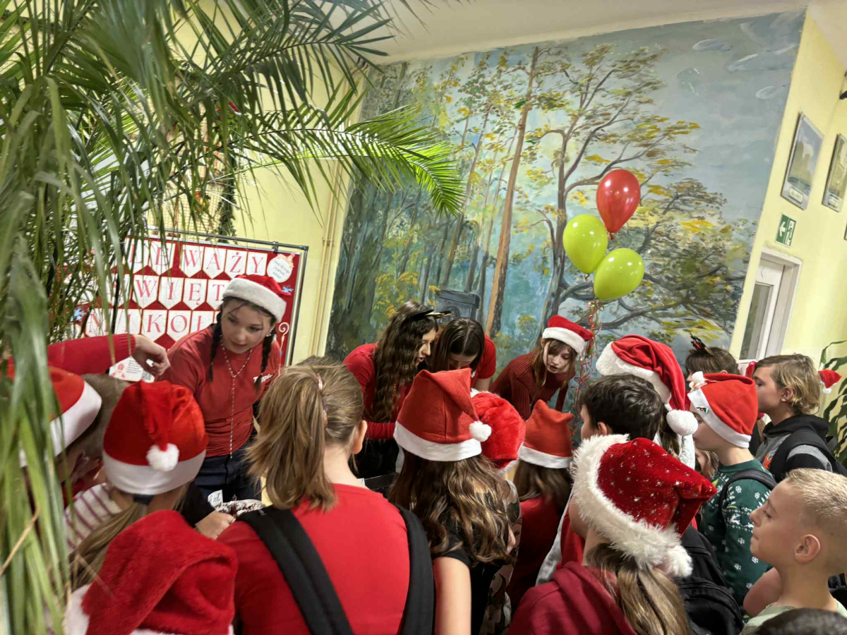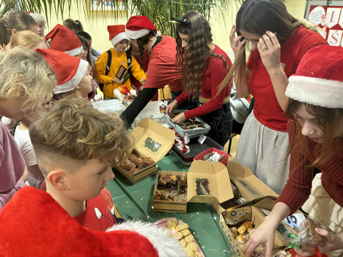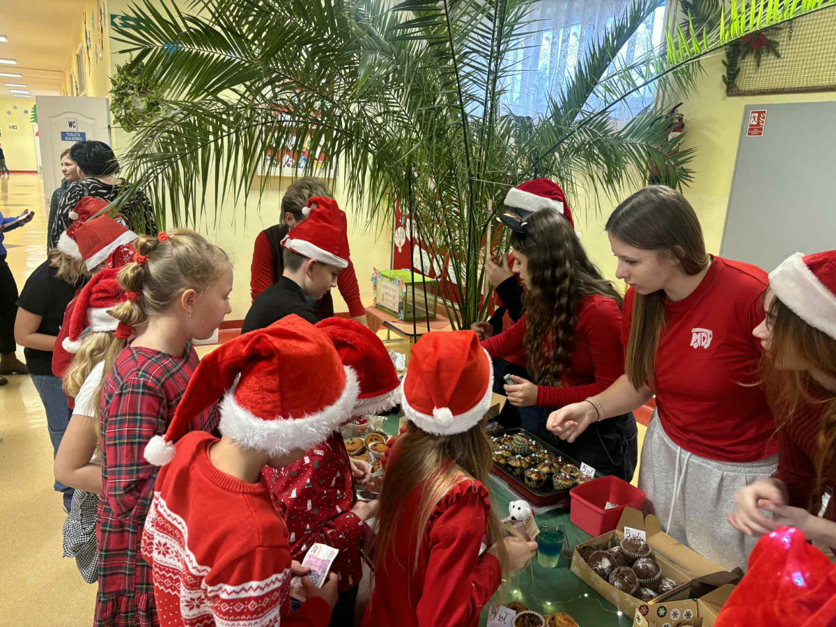 W naszej szkole trwa charytatywna zbiórka monet w ramach ogólnopolskiej akcji „Ile waży Święty Mikołaj?”. Aby wesprzeć inicjatywę, uczniowie przygotowali wyjątkowy mikołajkowy kiermasz ciasteczek, z którego cały dochód zostanie przeznaczony na cel akcji. Poniżej prezentujemy krótką fotorelację z kiermaszu, pełną świątecznej atmosfery, uśmiechów i zaangażowania naszych uczniów. Serdecznie dziękujemy wszystkim, którzy wzięli udział w wydarzeniu – za upieczone smakołyki, pomoc w organizacji oraz każdą wrzuconą do puszki monetę. Razem możemy naprawdę wiele!