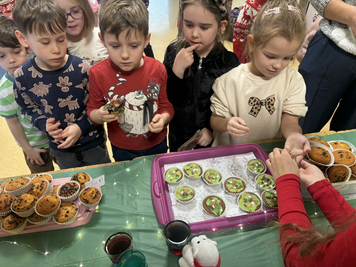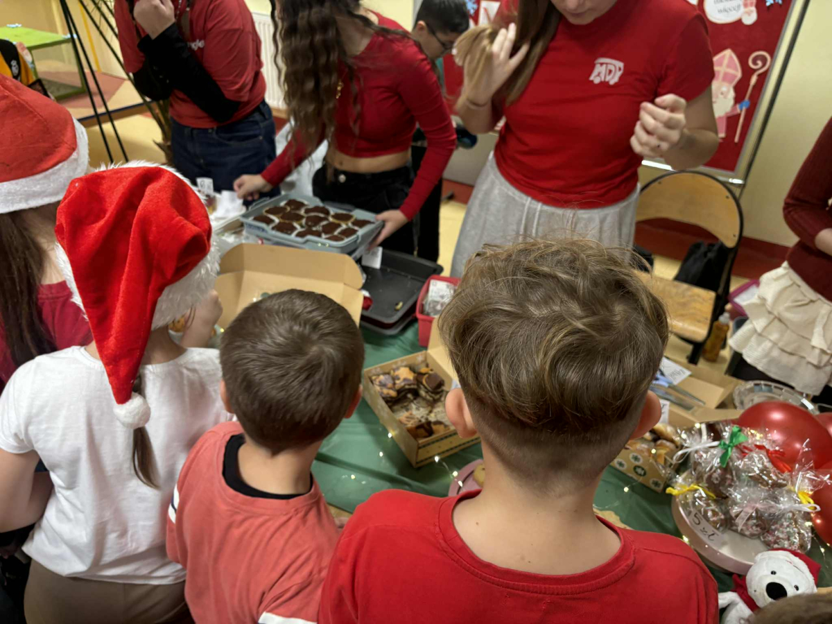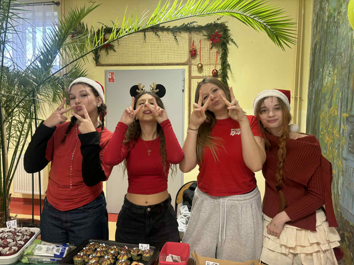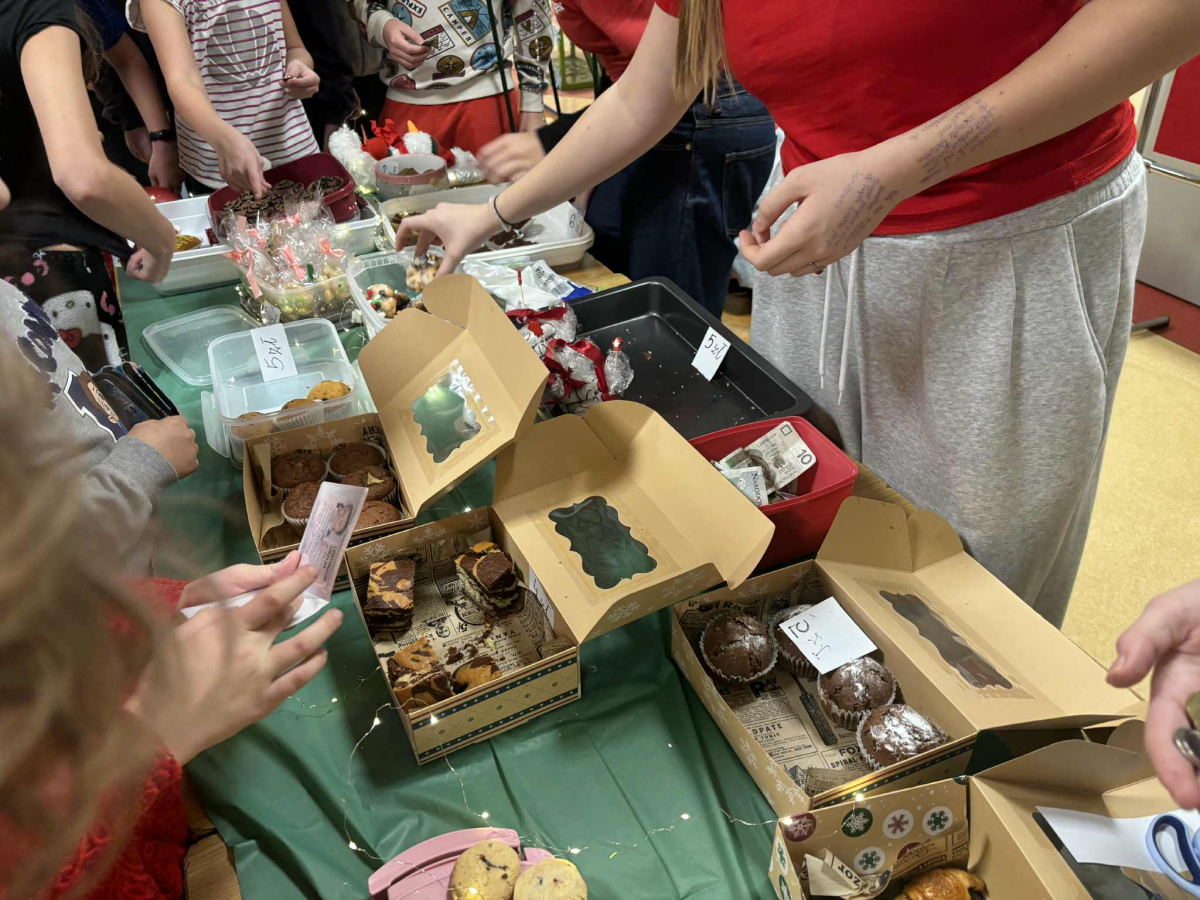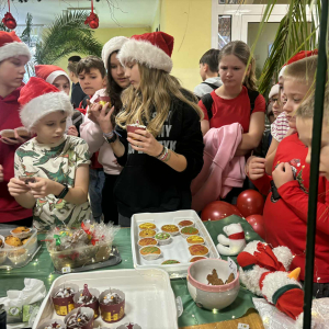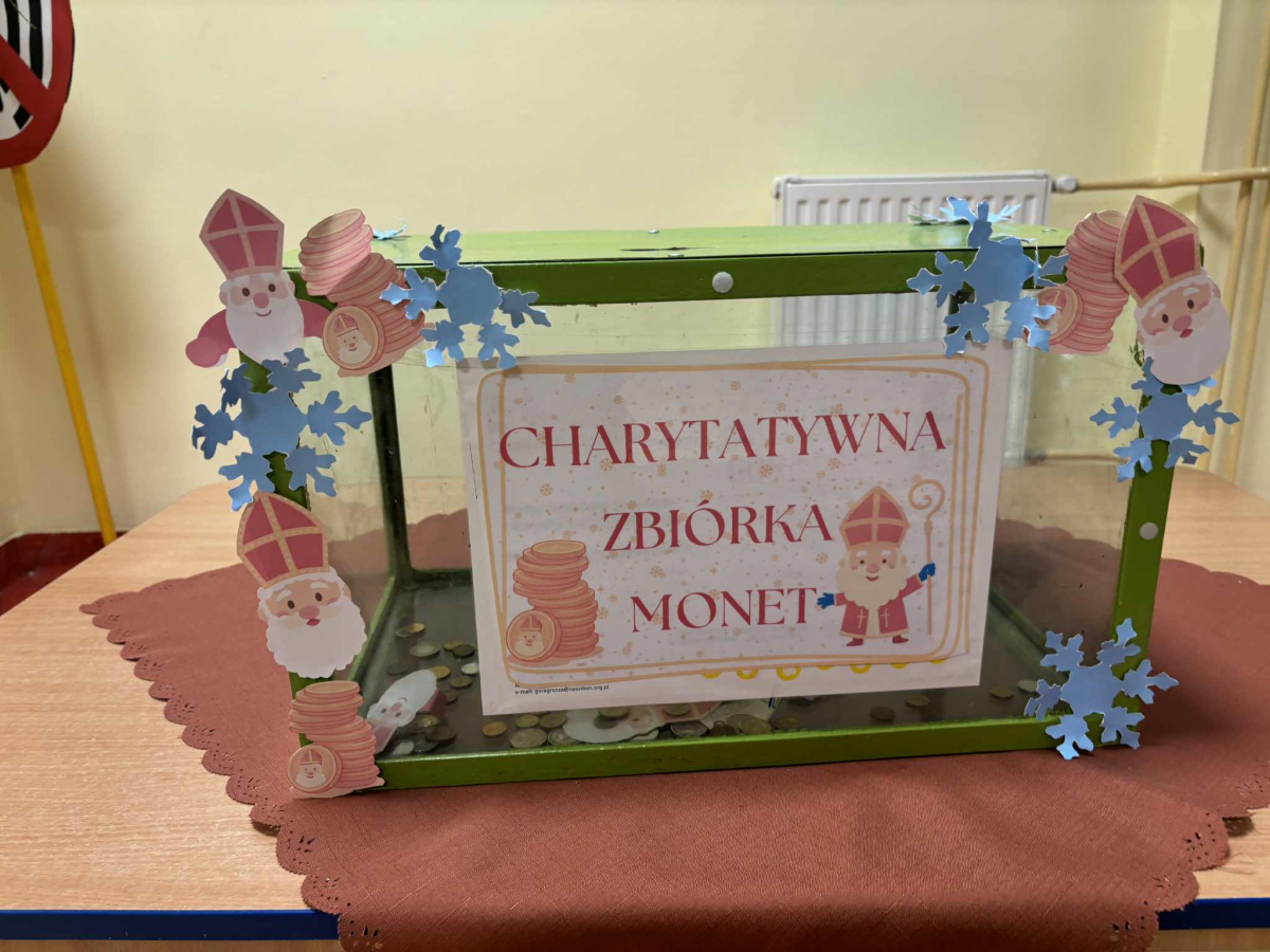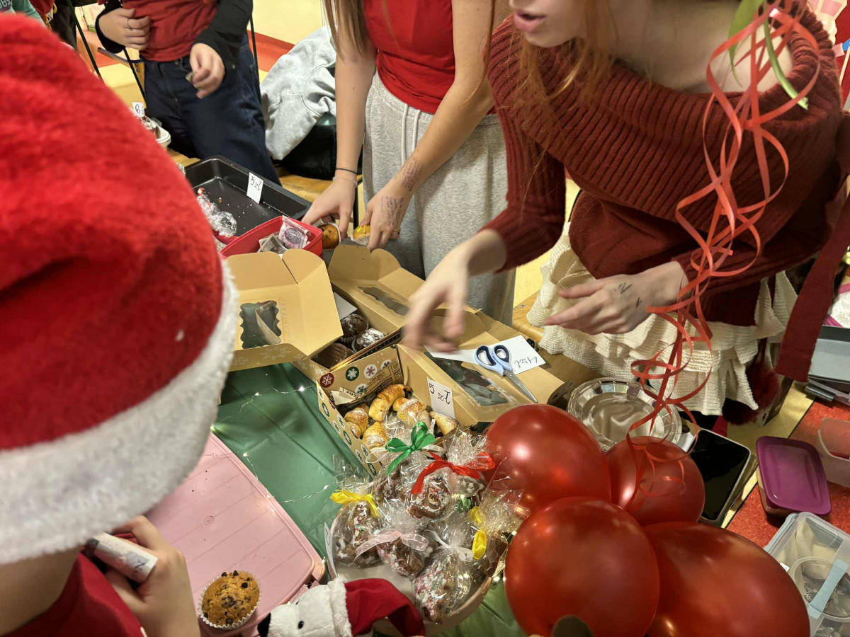 W naszej szkole trwa charytatywna zbiórka monet w ramach ogólnopolskiej akcji „Ile waży Święty Mikołaj?”. Aby wesprzeć inicjatywę, uczniowie przygotowali wyjątkowy mikołajkowy kiermasz ciasteczek, z którego cały dochód zostanie przeznaczony na cel akcji. Poniżej prezentujemy krótką fotorelację z kiermaszu, pełną świątecznej atmosfery, uśmiechów i zaangażowania naszych uczniów. Serdecznie dziękujemy wszystkim, którzy wzięli udział w wydarzeniu – za upieczone smakołyki, pomoc w organizacji oraz każdą wrzuconą do puszki monetę. Razem możemy naprawdę wiele!