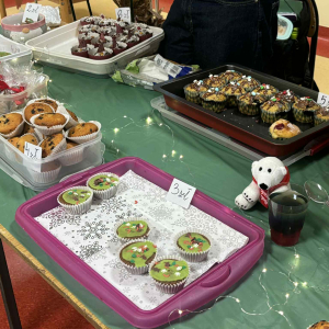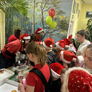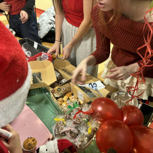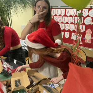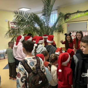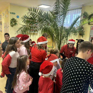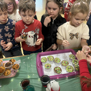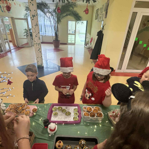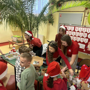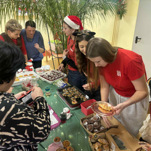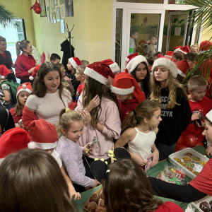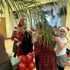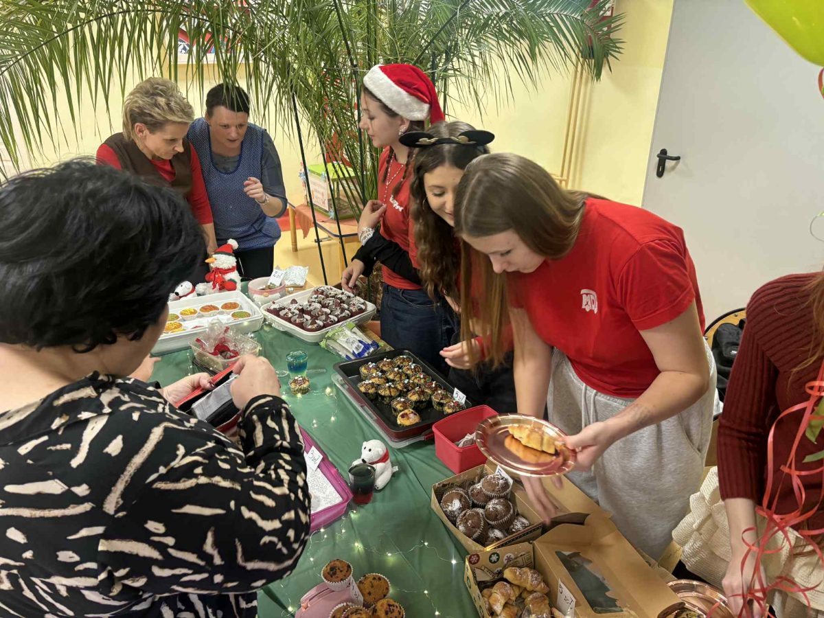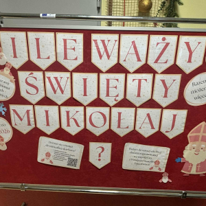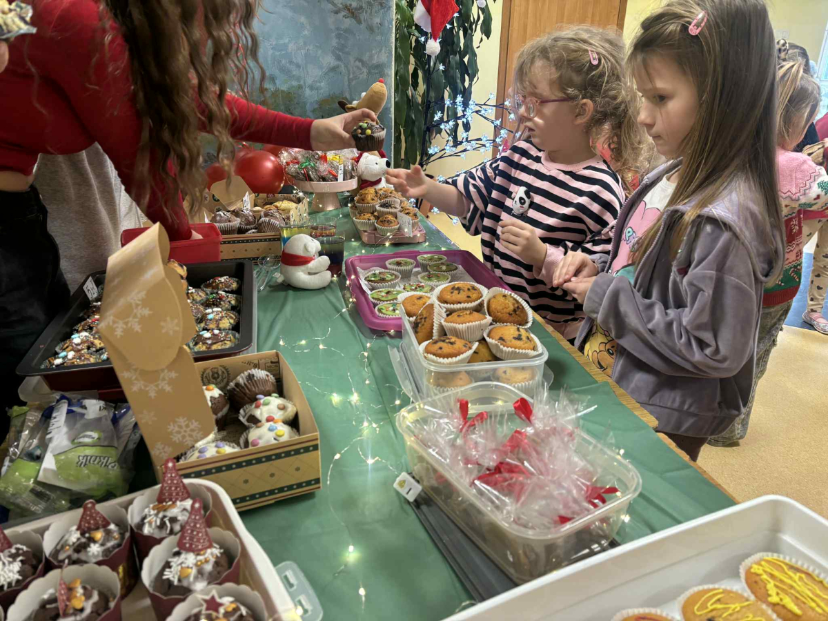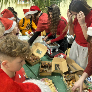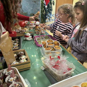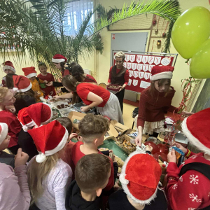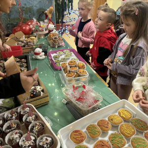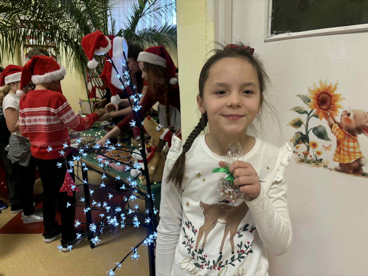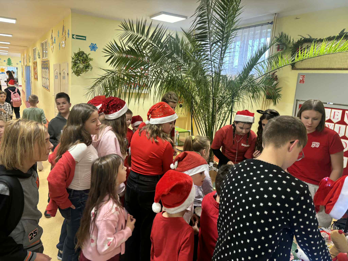 W naszej szkole trwa charytatywna zbiórka monet w ramach ogólnopolskiej akcji „Ile waży Święty Mikołaj?”. Aby wesprzeć inicjatywę, uczniowie przygotowali wyjątkowy mikołajkowy kiermasz ciasteczek, z którego cały dochód zostanie przeznaczony na cel akcji. Poniżej prezentujemy krótką fotorelację z kiermaszu, pełną świątecznej atmosfery, uśmiechów i zaangażowania naszych uczniów. Serdecznie dziękujemy wszystkim, którzy wzięli udział w wydarzeniu – za upieczone smakołyki, pomoc w organizacji oraz każdą wrzuconą do puszki monetę. Razem możemy naprawdę wiele!