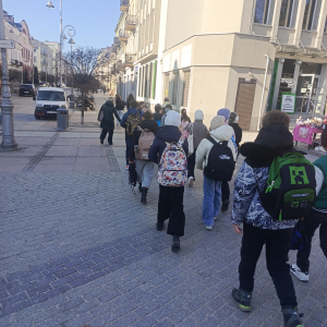 Pierwszym punktem programu był spacer w promieniach słońca po ulicy Sienkiewicza, gdzie uczniowie mogli poczuć wyjątkową, nieco zapomnianą atmosferę miasta. Następnie w Teatrze im. S. Żeromskiego obejrzeli spektakl oparty na "Opowieściach z Narnii" - lekturze czwartoklasistów. Przedstawienie bardzo się wszystkim podobało – aktorzy potrafili przykuć uwagę widzów, faun Tumnus rozbawiał publiczność, a lew Aslan zachwycał swoją dostojnością i mądrością.