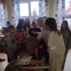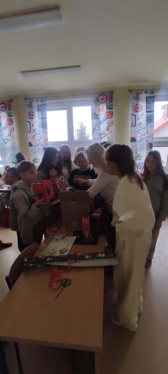 W ramach akcji „List Seniora do Mikołaja” uczniowie klas 6a i 6b oraz 7b naszej szkoły postanowili uczynić radość dwóm osobom, które potrzebują wsparcia i uwagi. W tym roku spełniliśmy marzenia niepełnosprawnego Pana Krzysztofa i seniorki Pani Wandy. Uczniowie z wielkim zaangażowaniem i radością pakowali prezenty i przygotowywali paczki, które musiały być dostarczone przed 6 grudnia. To już drugi rok, kiedy nasza szkoła bierze udział w tej szczytnej inicjatywie.