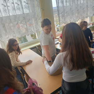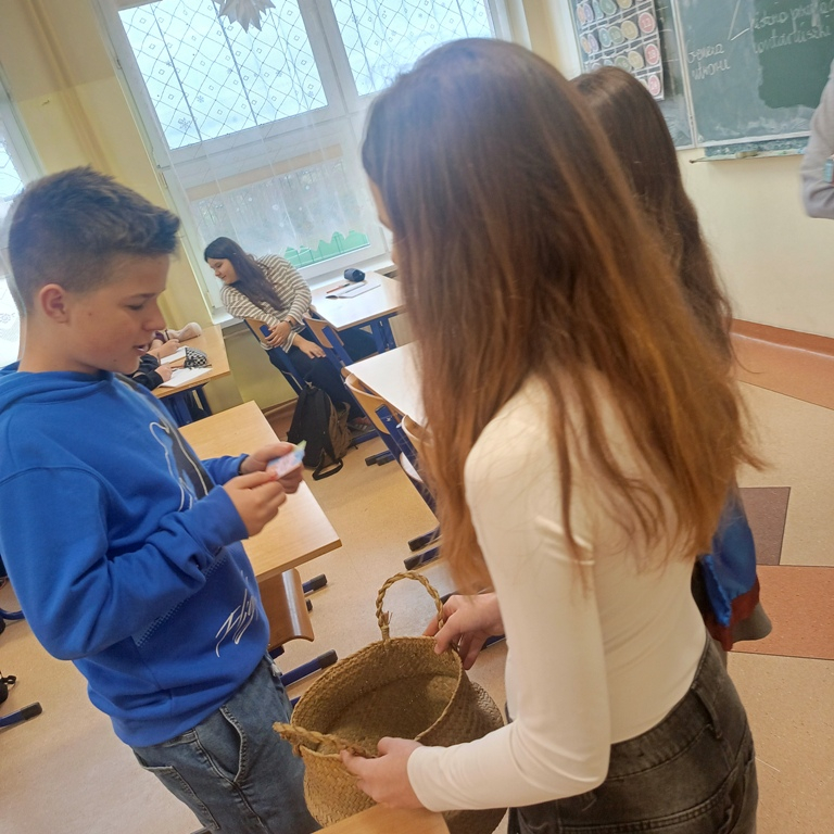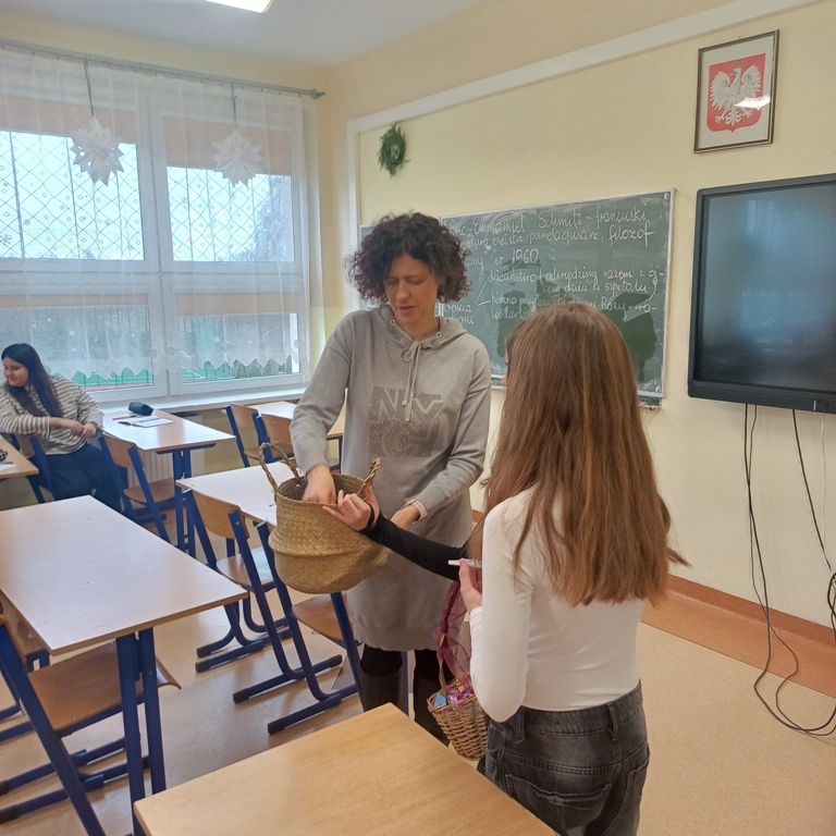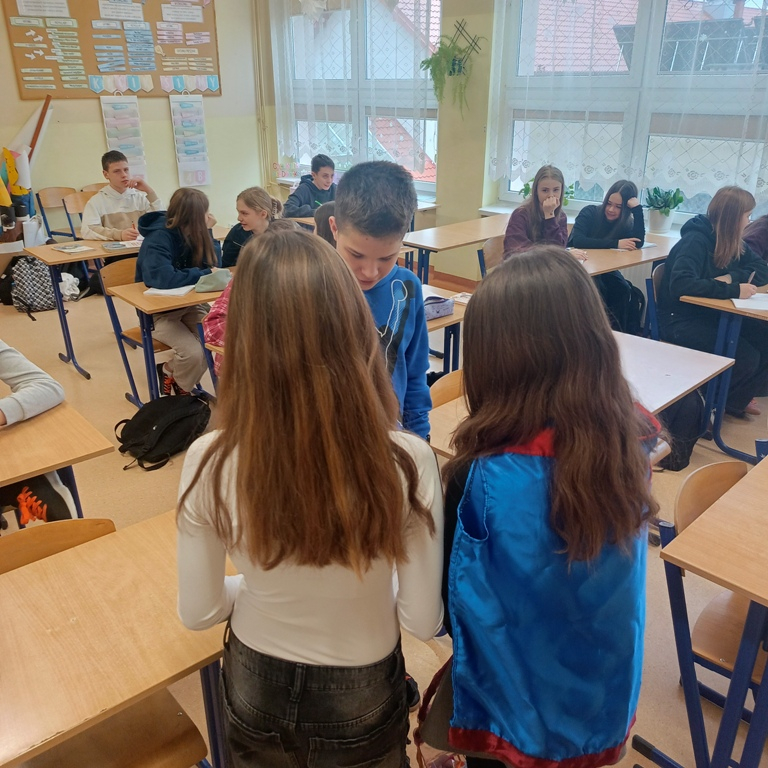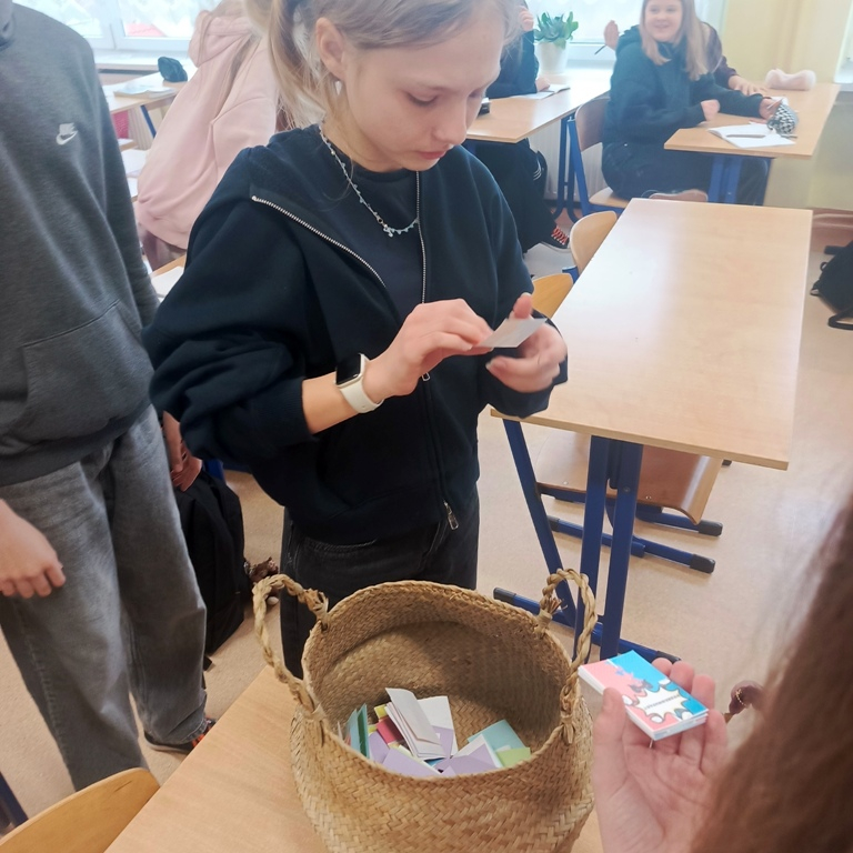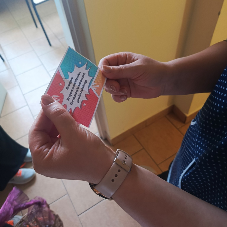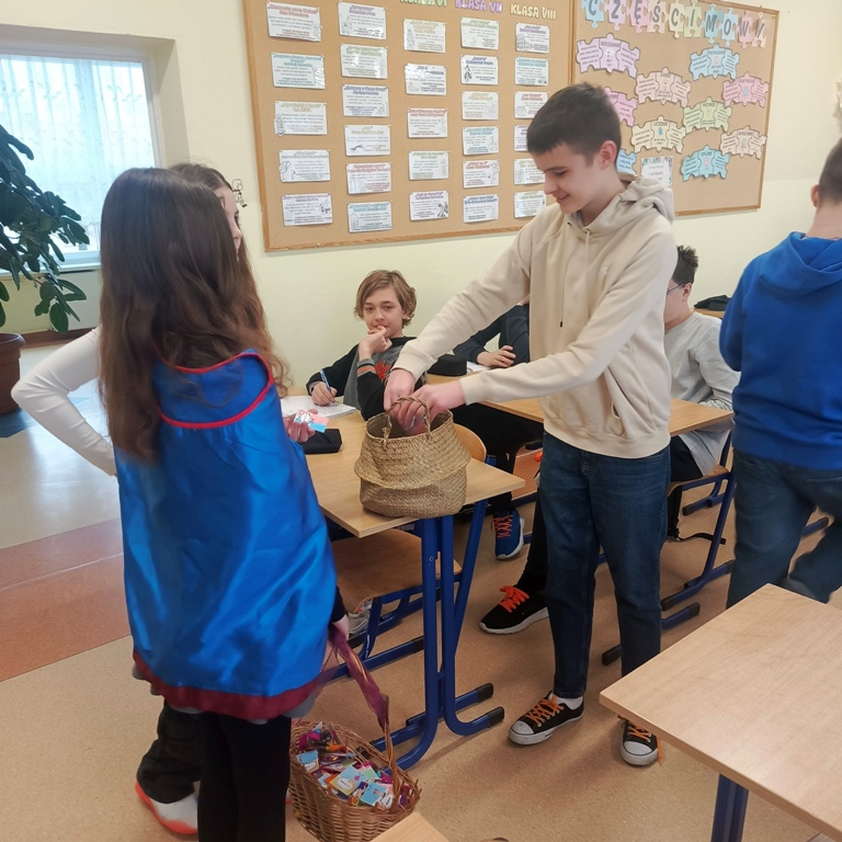 Dzisiejsze działania pokazały, że język polski jest nie tylko piękny, ale bywa również wymagający. Uczniowie, nauczyciele oraz pracownicy szkoły mieli okazję zmierzyć się z "łamańcami" językowymi i językowymi wyzwaniami. Ci, którym udało się im sprostać, otrzymali drobne upominki, a każdy uczestnik został obdarowany przez językowe superbohaterki specjalną „ściągawką” z trudnym słówkiem.