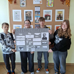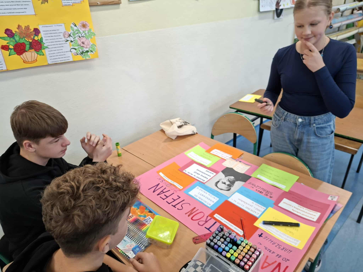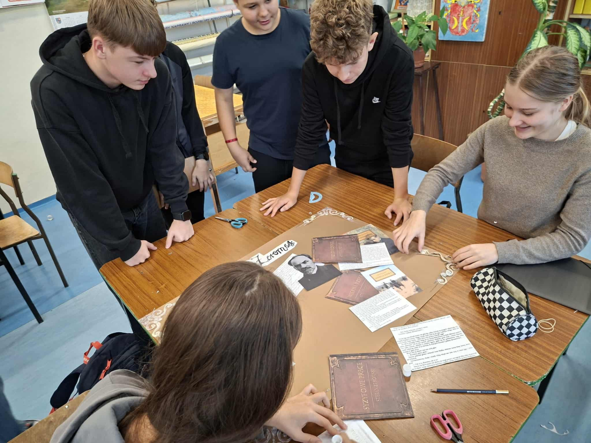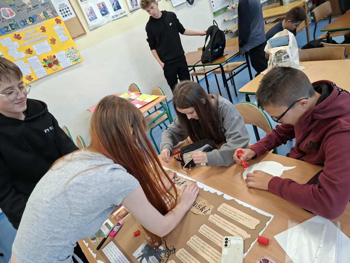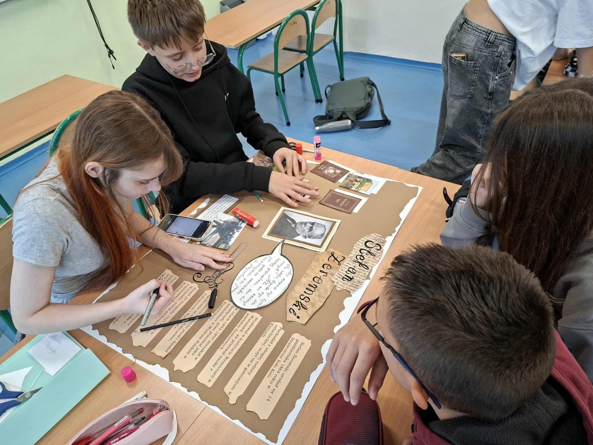 Podczas zajęć uczniowie przygotowali plakaty przedstawiające życie i twórczość pisarza oraz wiele ciekawostek z jego biografii. Była to ciekawa i inspirująca lekcja, która pozwoliła nie tylko lepiej poznać naszego patrona, lecz także przybliżyła kulturę i historię regionu świętokrzyskiego.