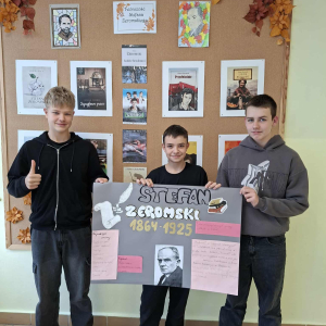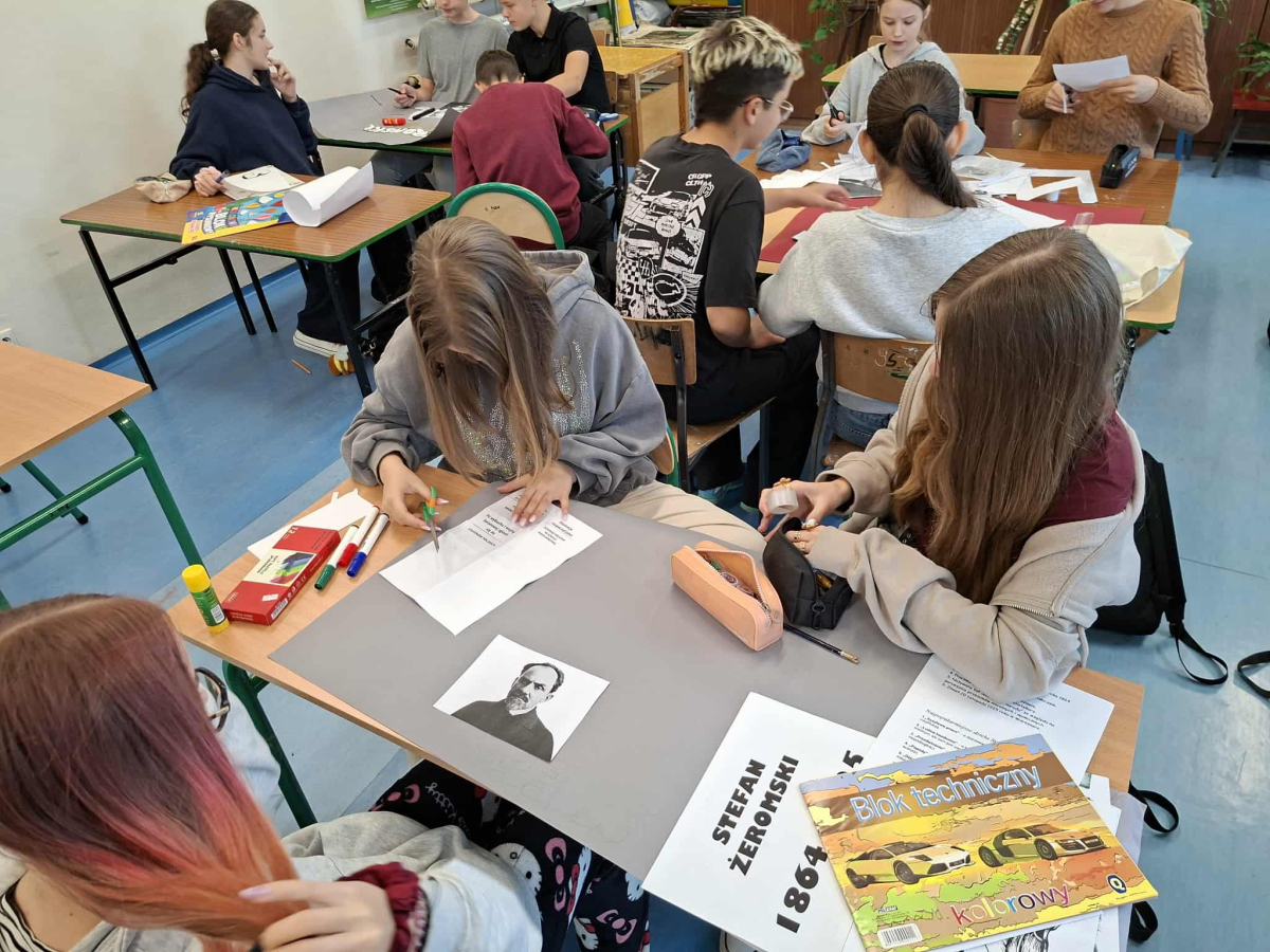 W październiku uczniowie klas ósmych mieli okazję na lekcjach wiedzy o społeczeństwie poszerzyć swoją wiedzę o patronie naszej szkoły – Stefanie Żeromskim. Okazją ku temu była 161 rocznica jego urodzin, przypadająca 14 października, a także zbliżająca się setna rocznica jego śmierci.