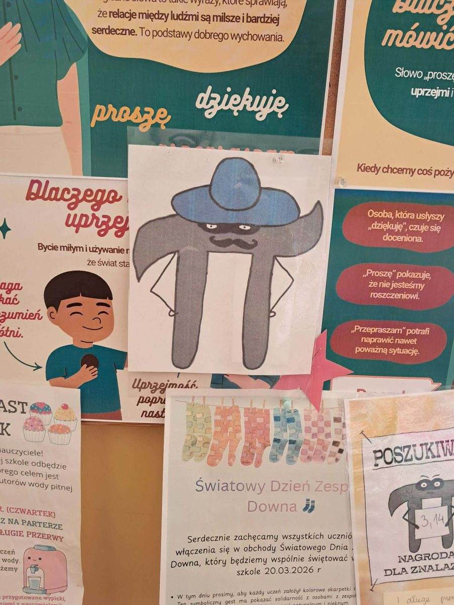 W poniedziałek, 16 marca, uczniowie naszej szkoły wzięli udział w akcji „W poszukiwaniu liczby pi”. Na szkolnych korytarzach ukryto aż 41 symboli tej wyjątkowej liczby.