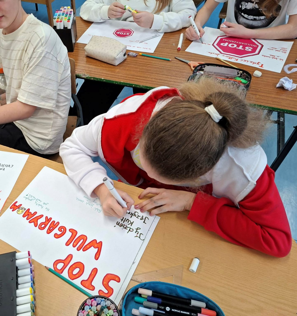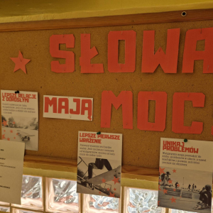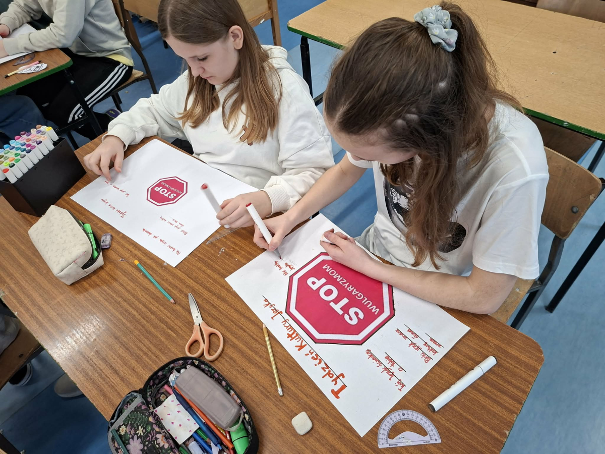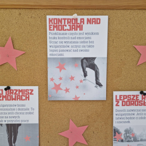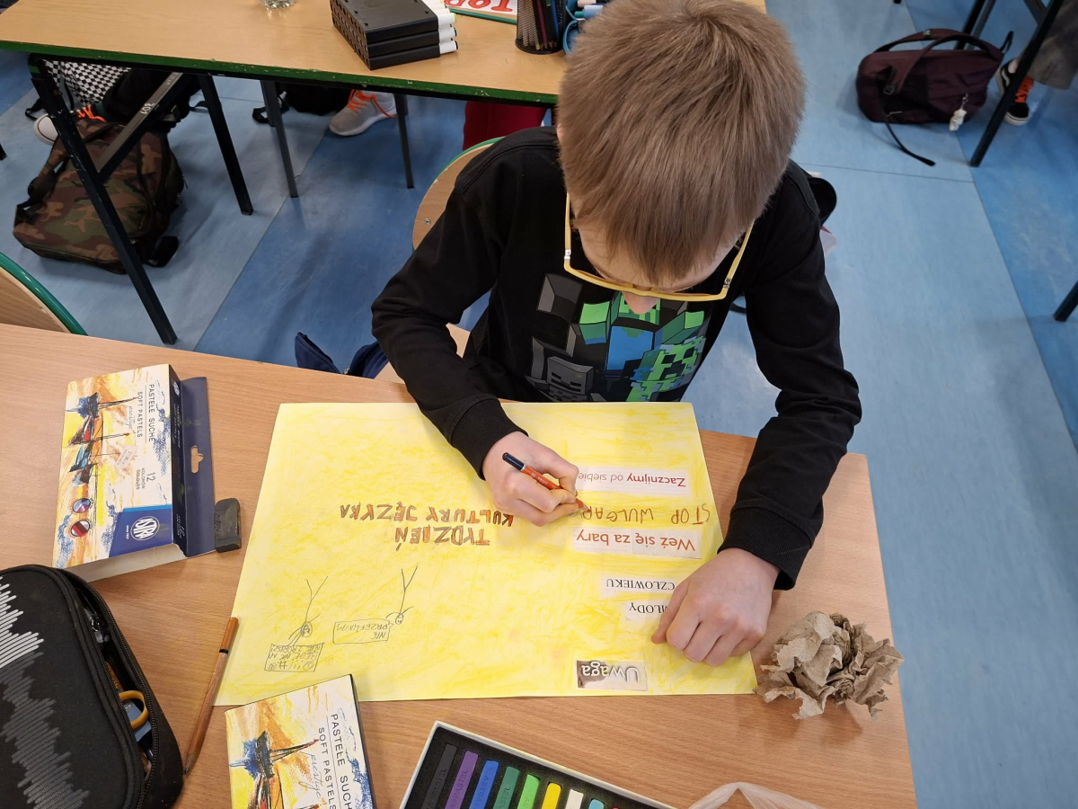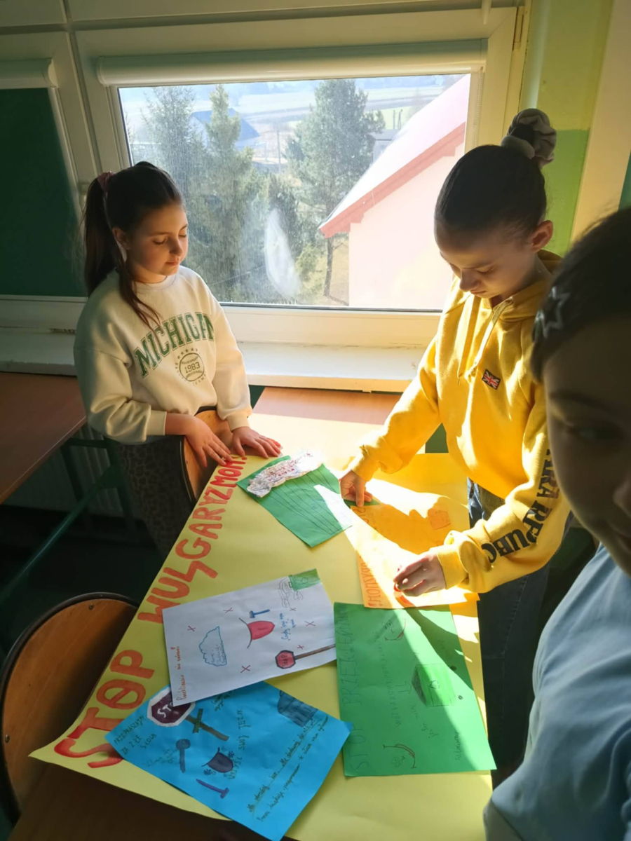 ✔ jak wyrażać emocje i złość bez obraźliwego języka.W klasach zorganizowano „Dzień bez wulgaryzmów”, a uczniowie przygotowali listy kreatywnych zamienników wulgarnych słów. Odbył się również konkurs na najlepszy plakat i hasło promujące kulturę języka.Samorząd Uczniowski przeprowadził akcję „Kulturalne słowo dnia”, w której każdego dnia na gazetce szkolnej pojawiał się zabawny i pozytywny zamiennik wulgaryzmu. Przygotowano także gazetkę tematyczną.Uczniowie uczestniczyli również w warsztatach dotyczących komunikacji bez agresji oraz radzenia sobie z emocjami.Dziękujemy wszystkim uczniom i nauczycielom za zaangażowanie w akcję. Wierzymy, że kulturalne słowo ma wielką moc i pomaga budować dobrą atmosferę w naszej szkolnej społeczności.