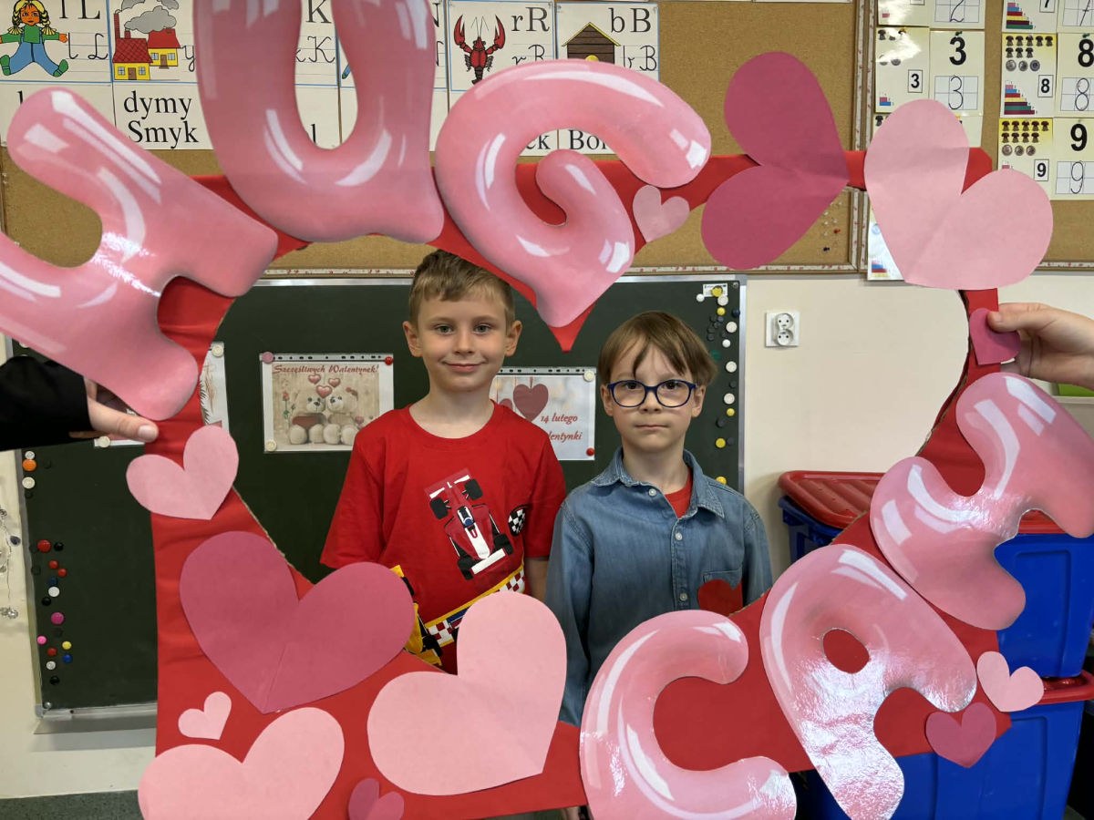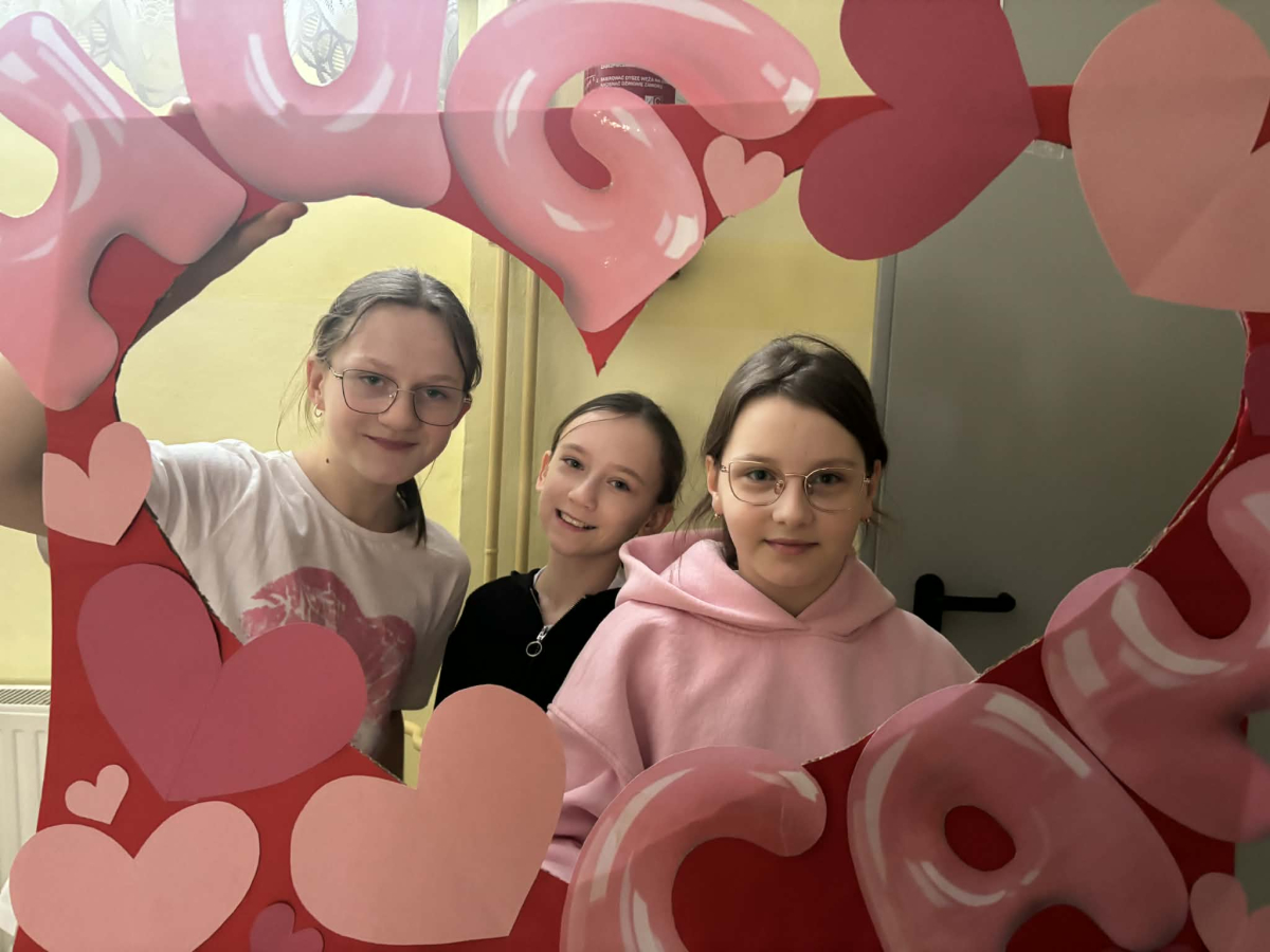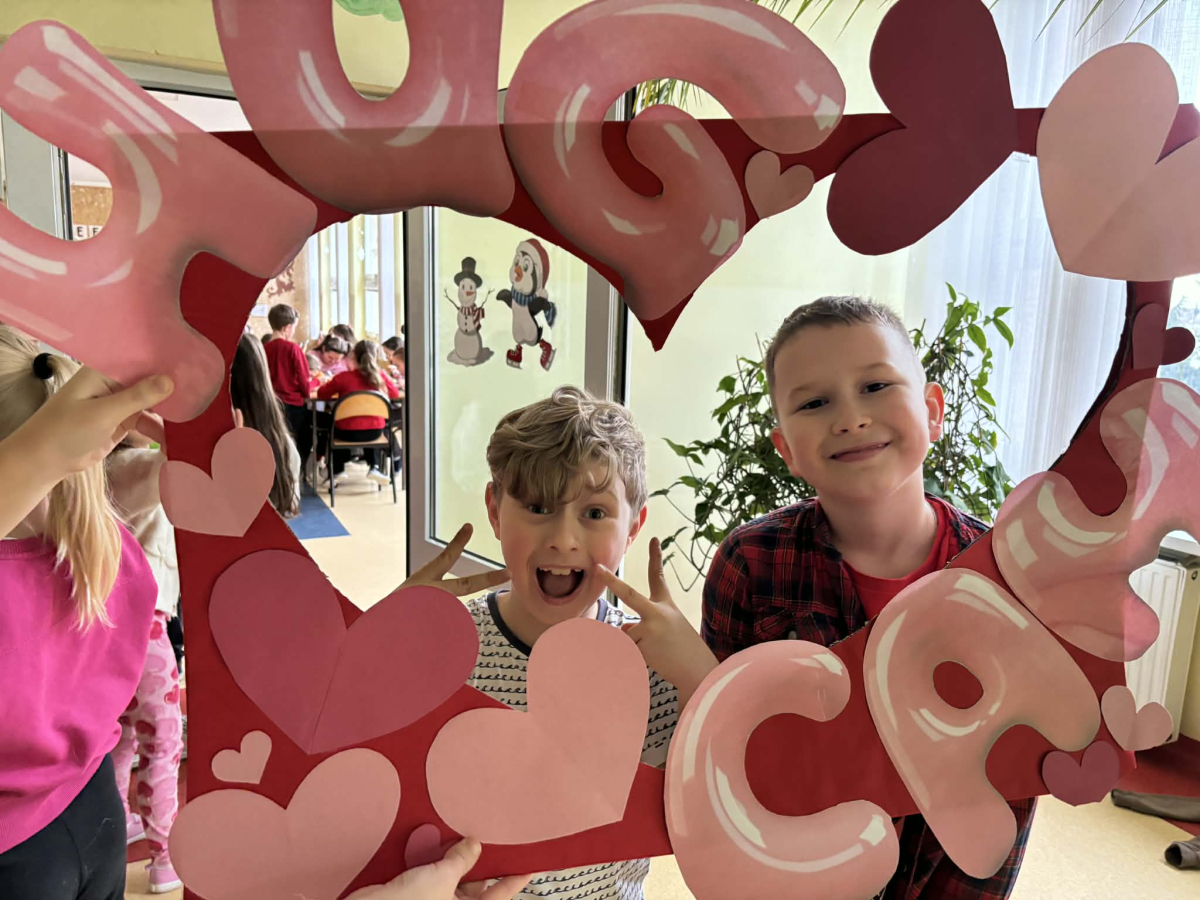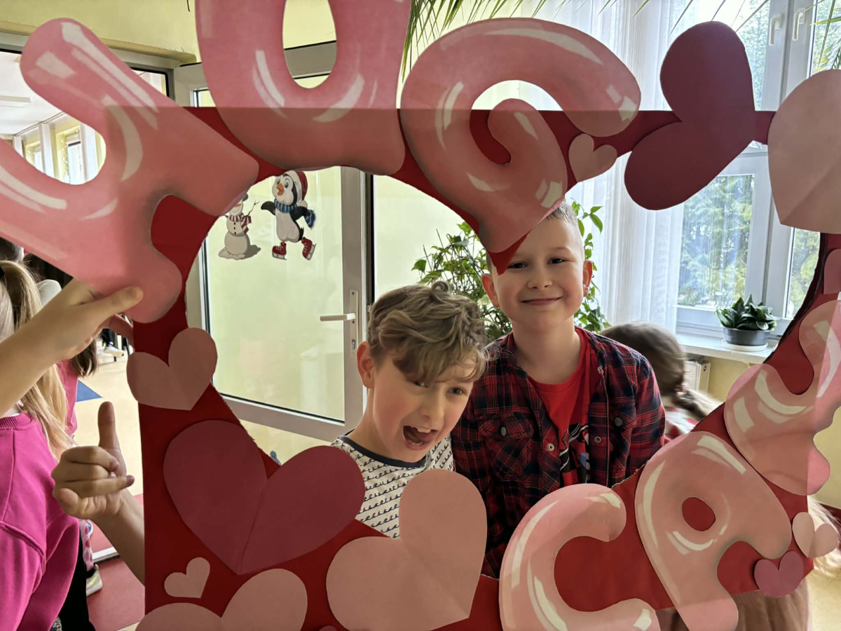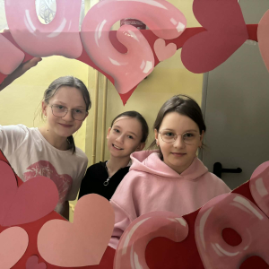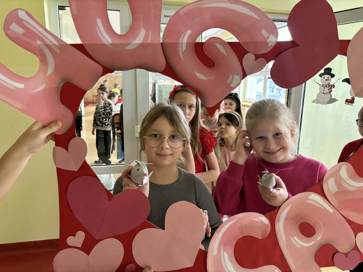 Samorząd Uczniowski tradycyjnie przygotował pocztę walentynkową, której celem było przekazanie drugiej osobie miłych słów i życzliwości. Uczennice klas czwartych z wielkim zaangażowaniem włączyły się we współorganizację tego dnia — rozdawały czerwone cukierki z własnoręcznie przygotowanymi serduszkami i ciepłymi wiadomościami. Wielu uczniów ubrało się na czerwono i różowo, a także mogło zrobić sobie pamiątkowe zdjęcia w specjalnej walentynkowej fotoramce.