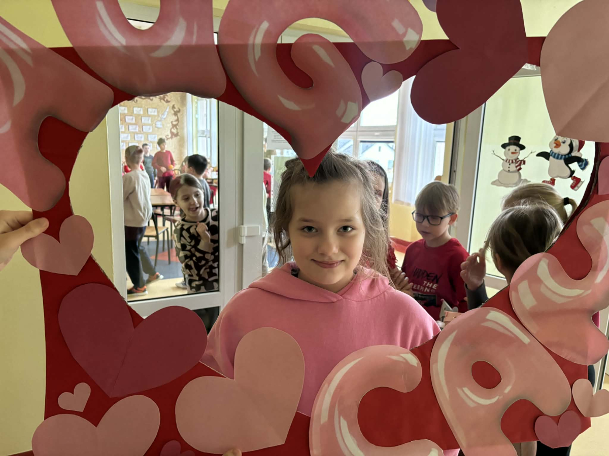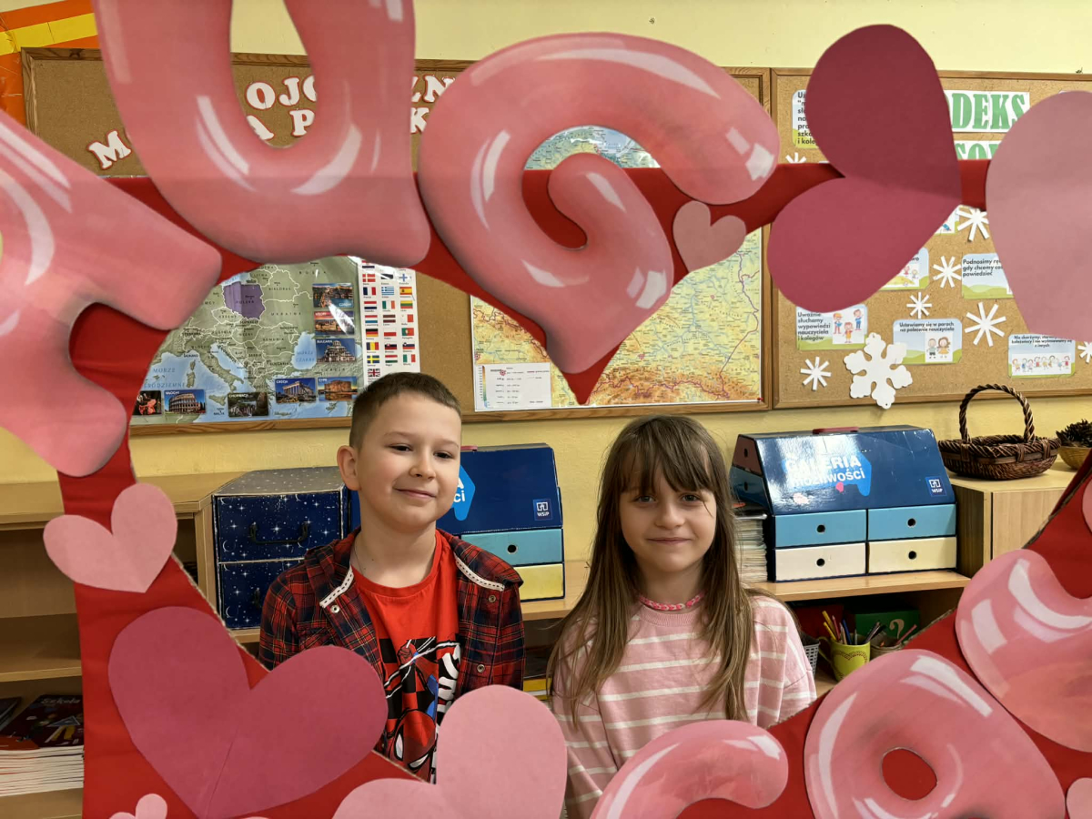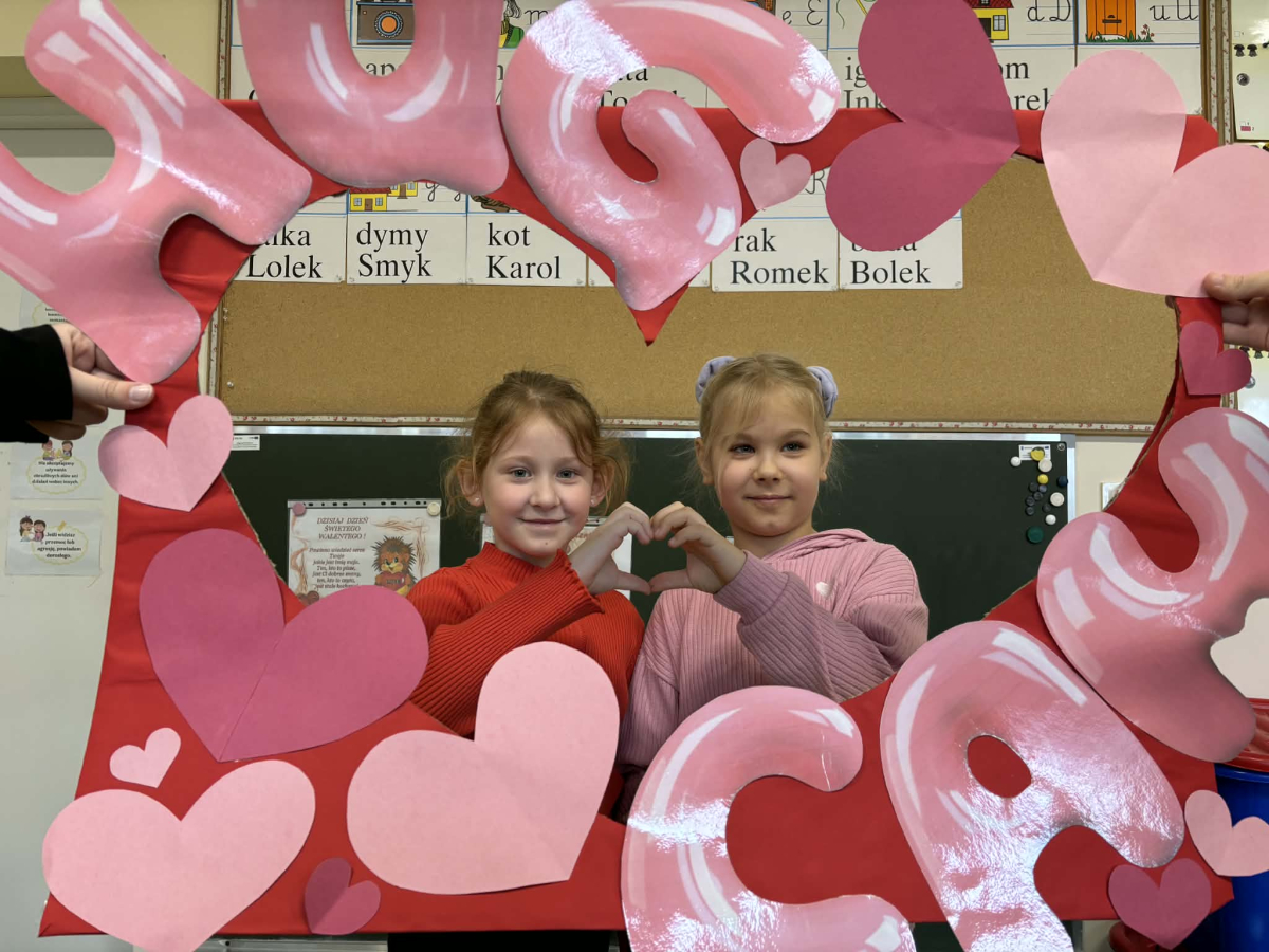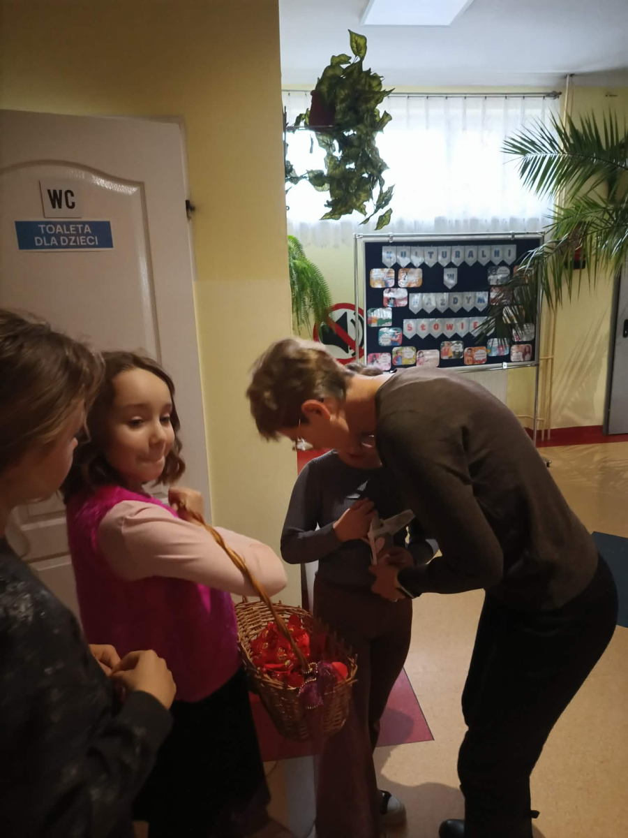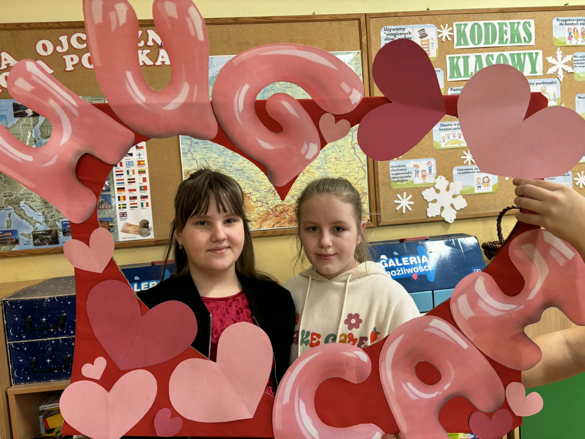 Samorząd Uczniowski tradycyjnie przygotował pocztę walentynkową, której celem było przekazanie drugiej osobie miłych słów i życzliwości. Uczennice klas czwartych z wielkim zaangażowaniem włączyły się we współorganizację tego dnia — rozdawały czerwone cukierki z własnoręcznie przygotowanymi serduszkami i ciepłymi wiadomościami. Wielu uczniów ubrało się na czerwono i różowo, a także mogło zrobić sobie pamiątkowe zdjęcia w specjalnej walentynkowej fotoramce.