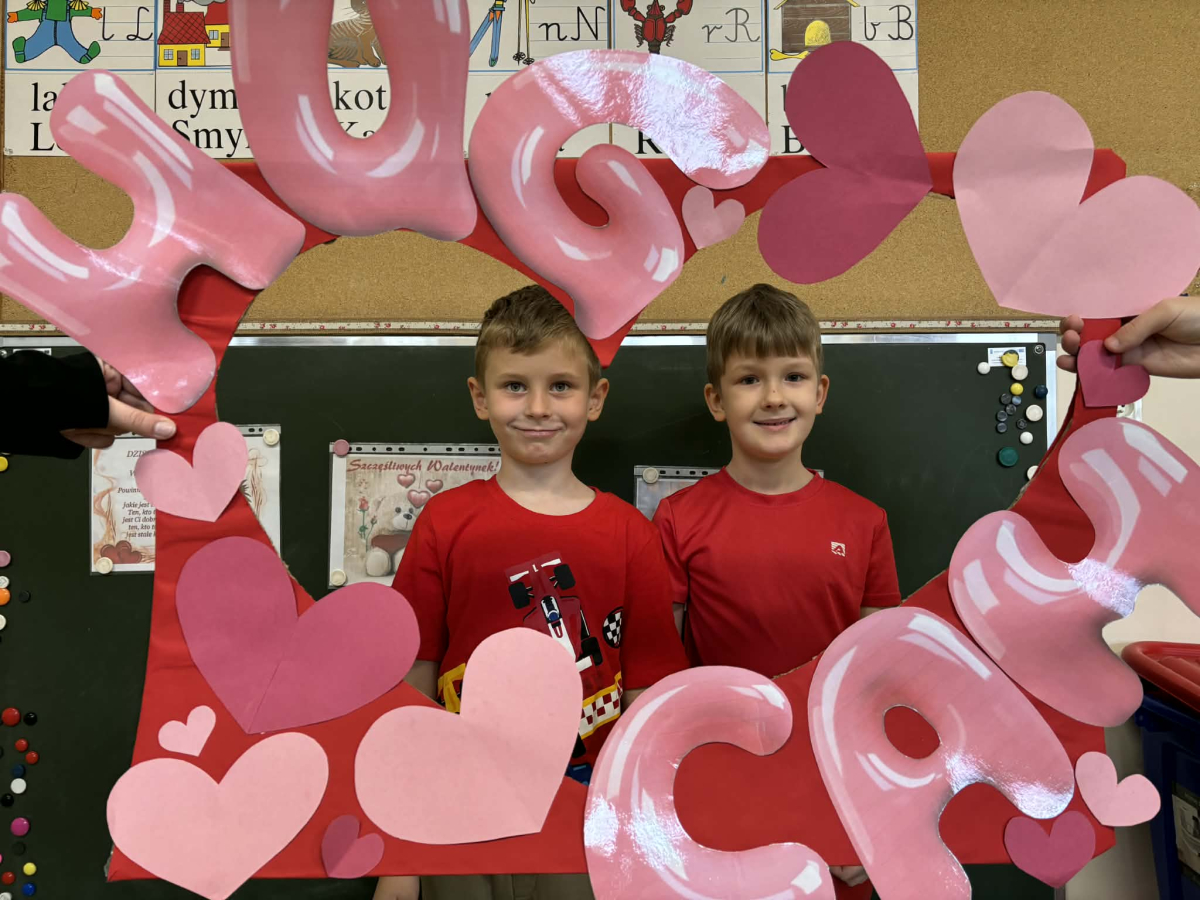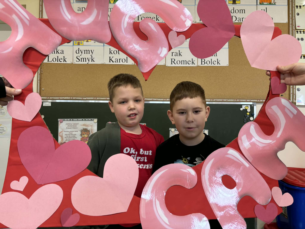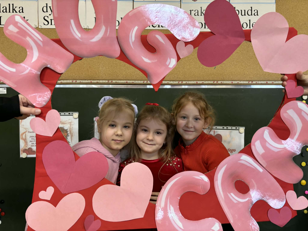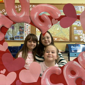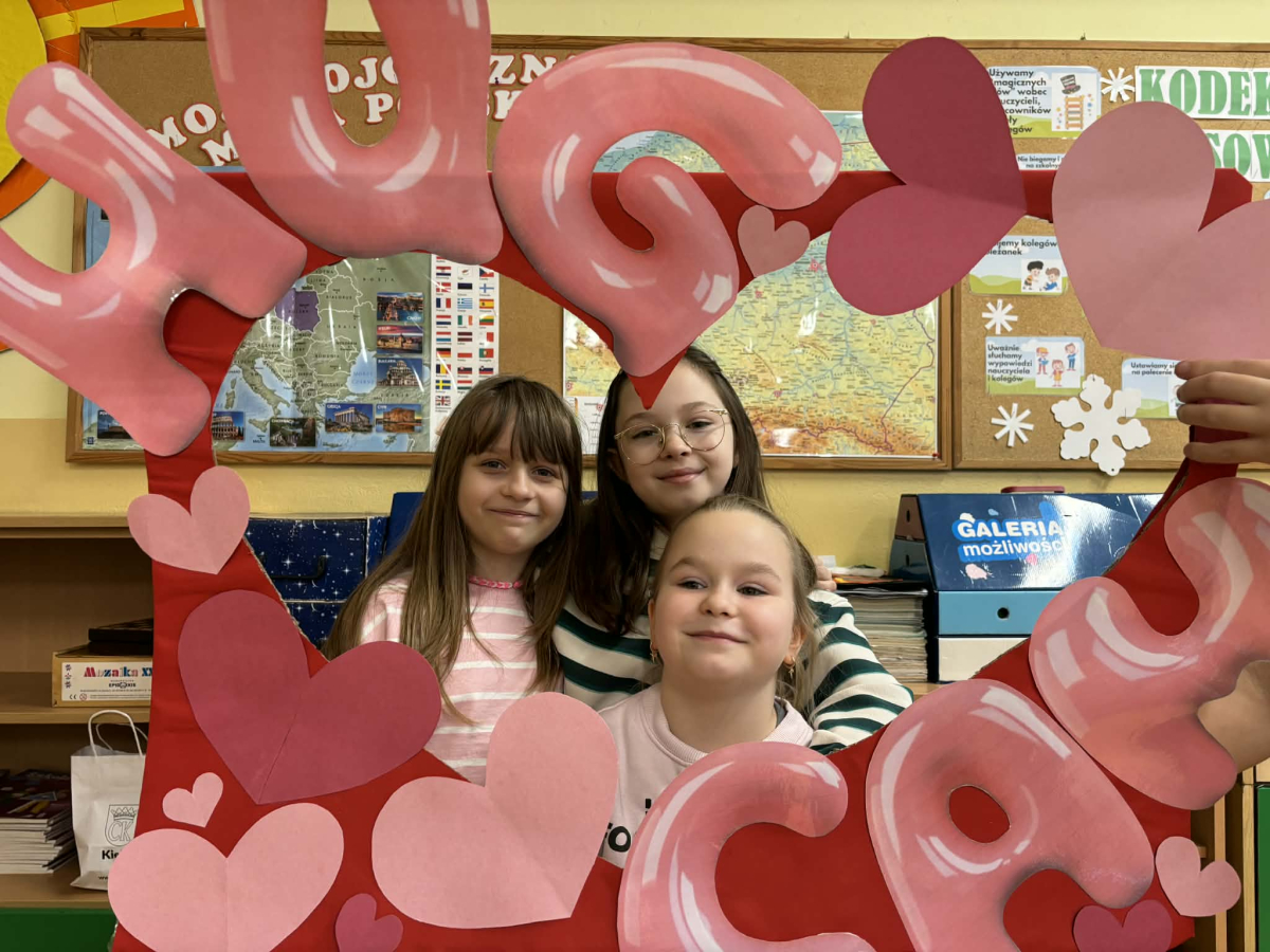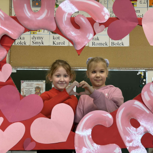 Samorząd Uczniowski tradycyjnie przygotował pocztę walentynkową, której celem było przekazanie drugiej osobie miłych słów i życzliwości. Uczennice klas czwartych z wielkim zaangażowaniem włączyły się we współorganizację tego dnia — rozdawały czerwone cukierki z własnoręcznie przygotowanymi serduszkami i ciepłymi wiadomościami. Wielu uczniów ubrało się na czerwono i różowo, a także mogło zrobić sobie pamiątkowe zdjęcia w specjalnej walentynkowej fotoramce.