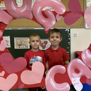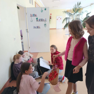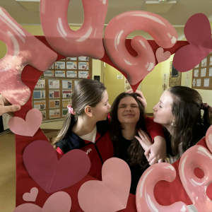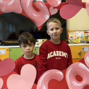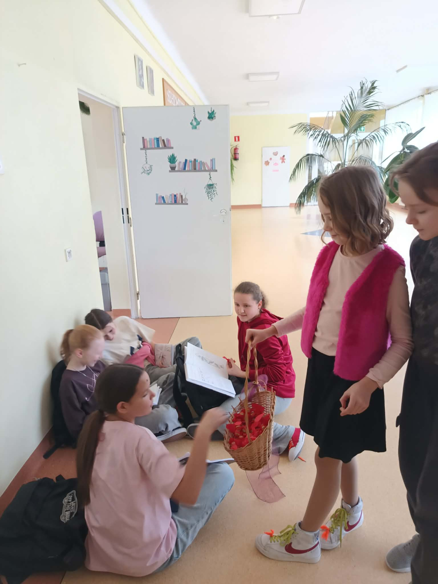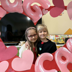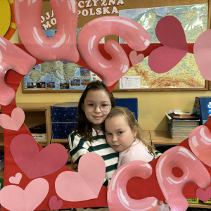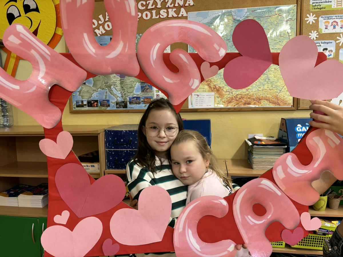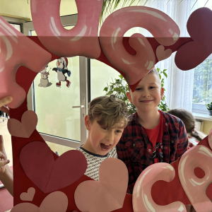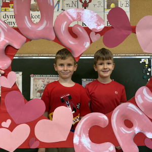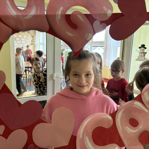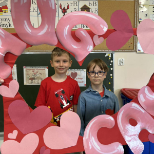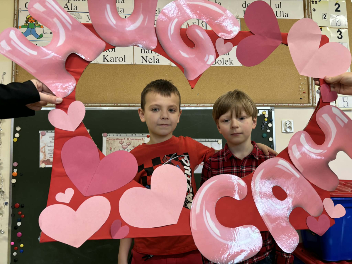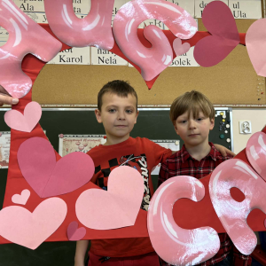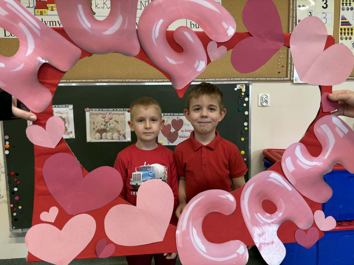 Samorząd Uczniowski tradycyjnie przygotował pocztę walentynkową, której celem było przekazanie drugiej osobie miłych słów i życzliwości. Uczennice klas czwartych z wielkim zaangażowaniem włączyły się we współorganizację tego dnia — rozdawały czerwone cukierki z własnoręcznie przygotowanymi serduszkami i ciepłymi wiadomościami. Wielu uczniów ubrało się na czerwono i różowo, a także mogło zrobić sobie pamiątkowe zdjęcia w specjalnej walentynkowej fotoramce.