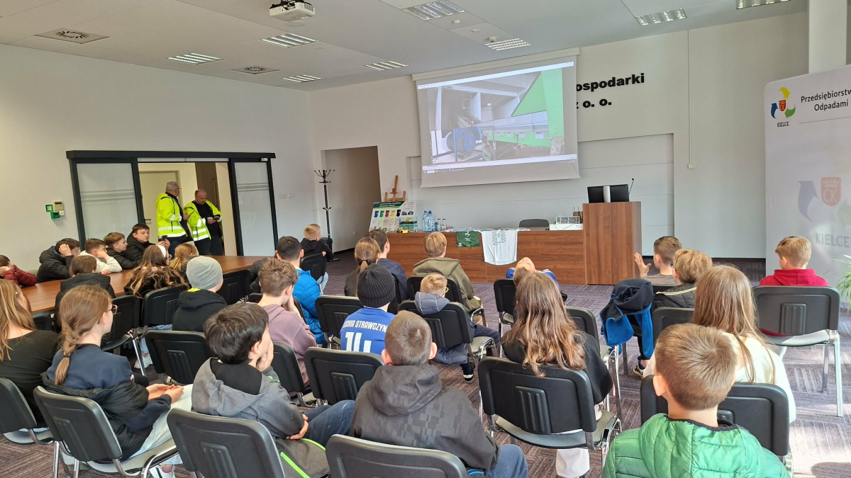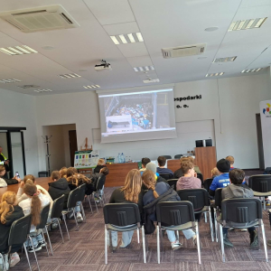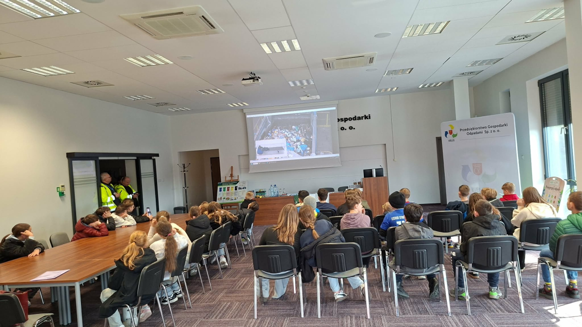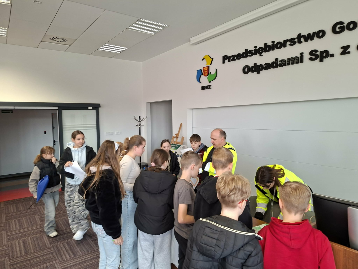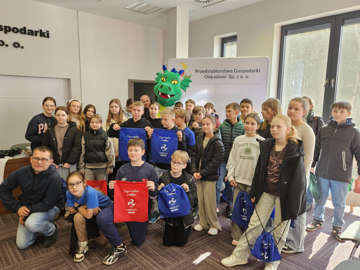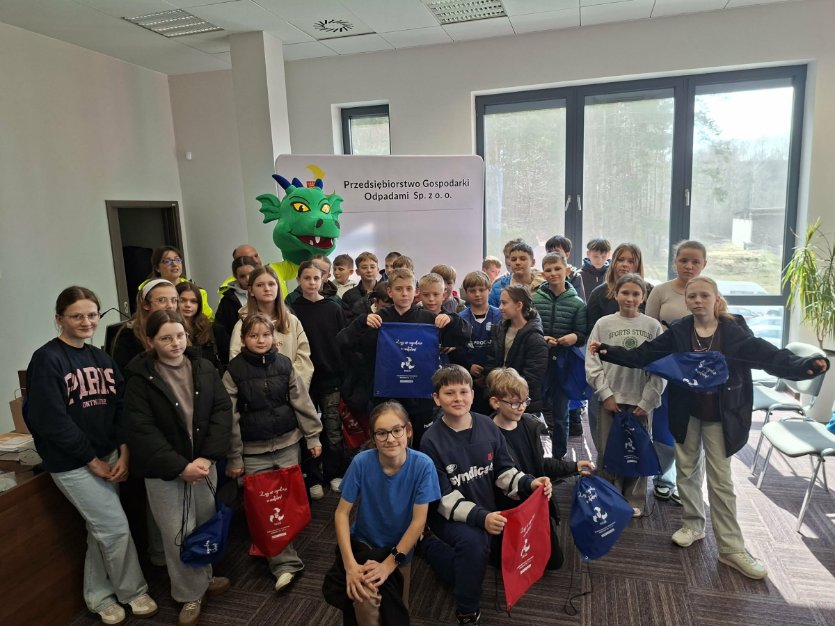 W dniu 19.03.2026 r. klasy V Szkoły Podstawowej im. Stefana Żeromskiego w Strawczynie odwiedziły Przedsiębiorstwo Gospodarki Odpadami w Promniku. Celem wizyty było poznanie zasad segregacji śmieci oraz procesu ich przetwarzania i recyklingu.