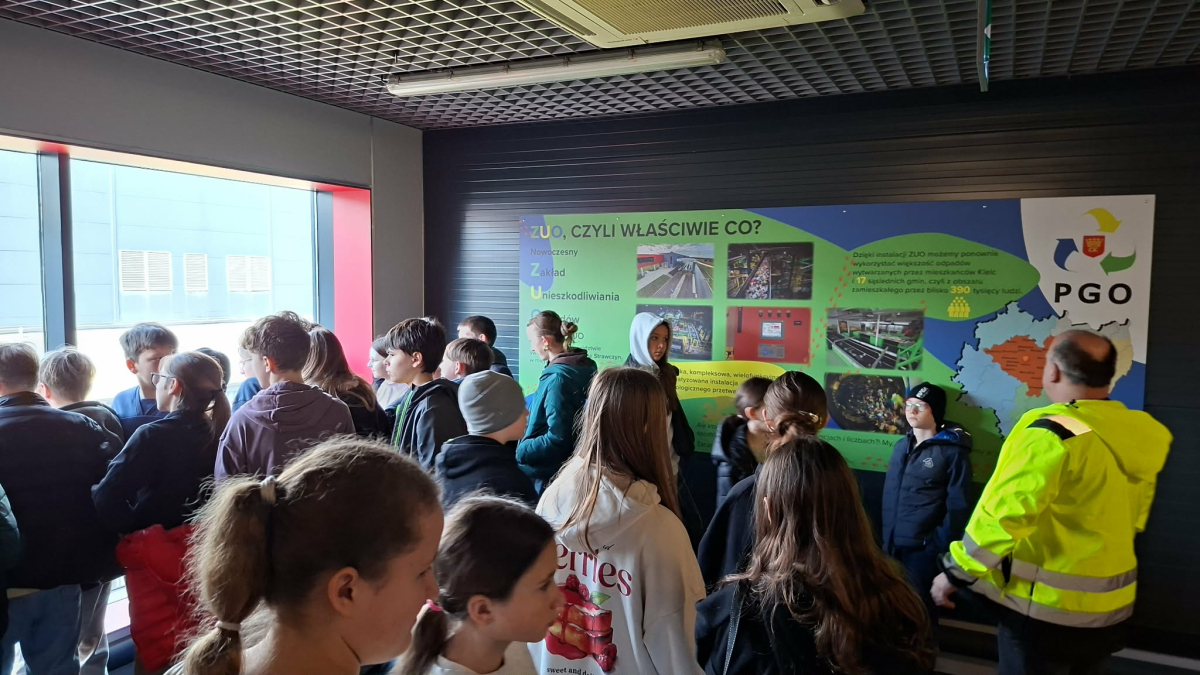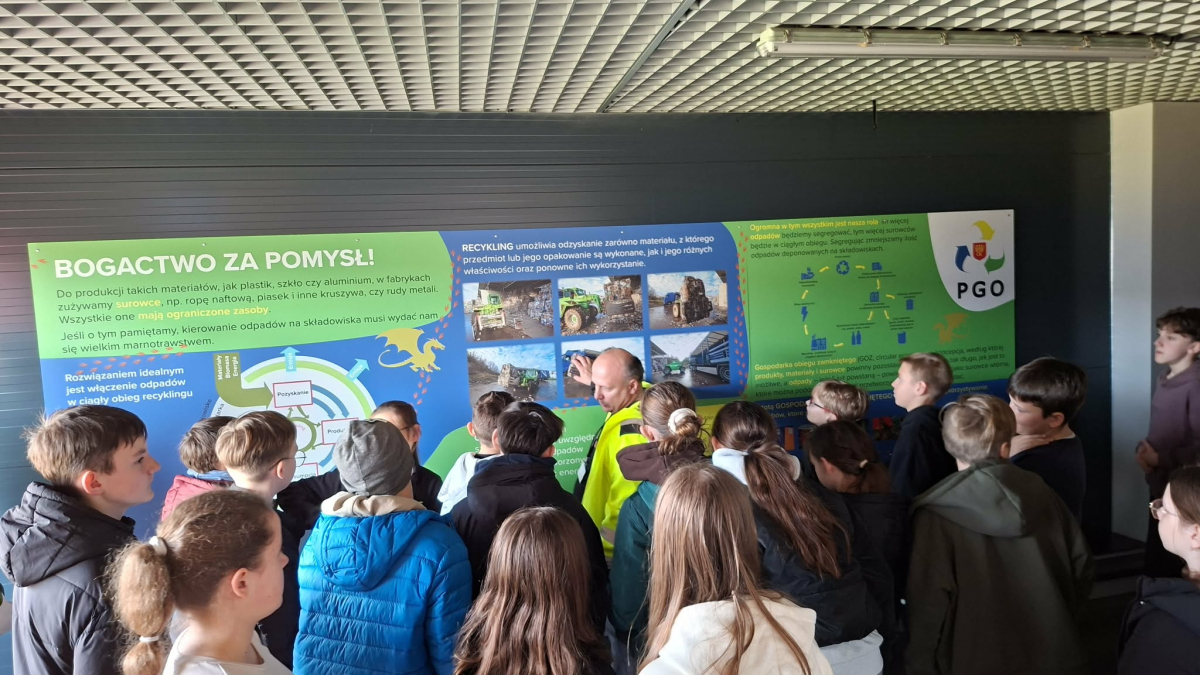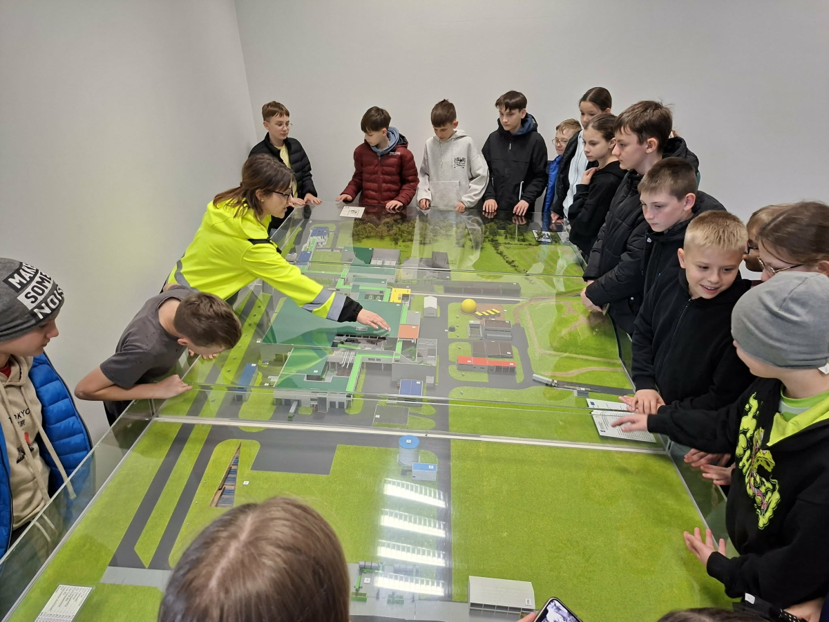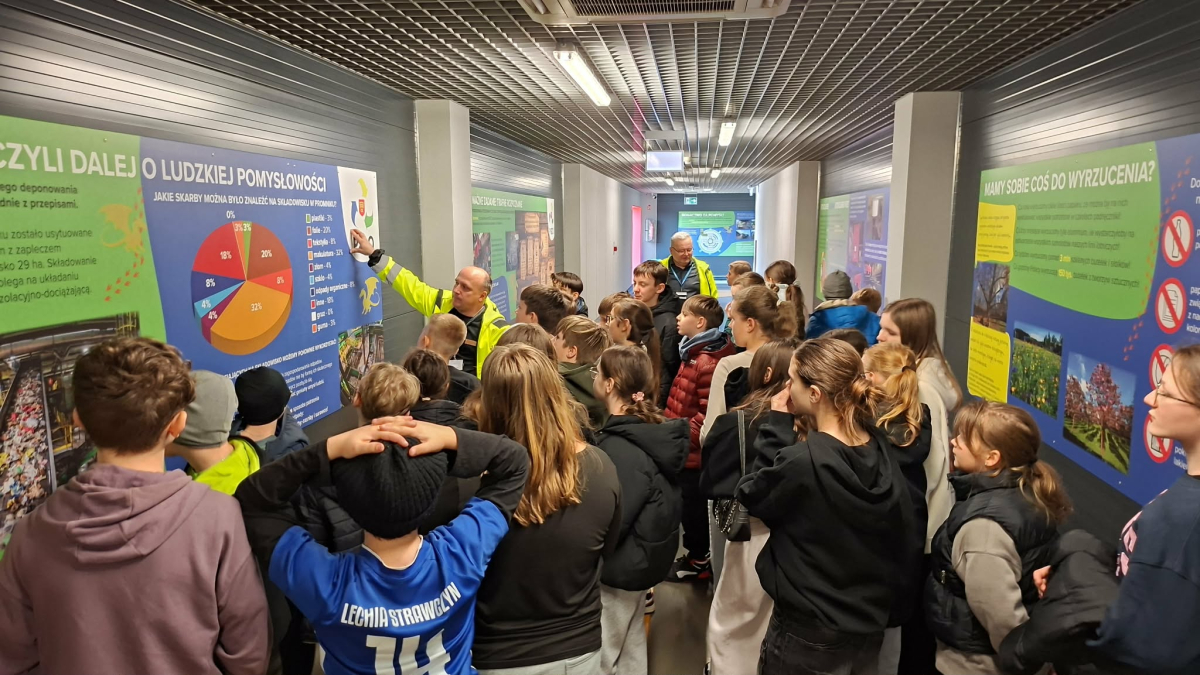 Podczas zwiedzania uczniowie mieli okazję zobaczyć, jak wygląda praca zakładu oraz jak duże znaczenie ma prawidłowe postępowanie z odpadami w życiu codziennym. Dowiedzieliśmy się, że odpowiednie dzielenie śmieci na plastik, szkło, papier i odpady bio znacznie ułatwia ich dalsze przetwarzanie.
