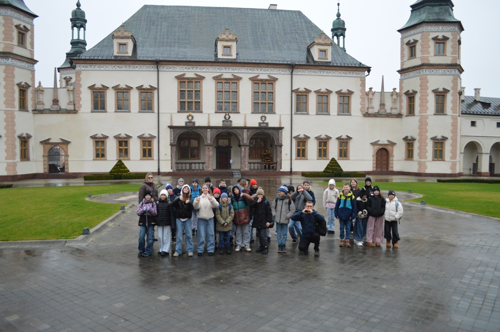 11 grudnia 2025 r. uczniowie klas 5a i 5b wzięli udział w mikołajkowej wycieczce do Kielc. Pierwszym punktem programu było zwiedzanie Muzeum Lat Szkolnych Stefana Żeromskiego, co stało się doskonałą okazją do uczczenia 100. rocznicy śmierci patrona naszej szkoły. Uczniowie poznali, jak wyglądały szkolne lata pisarza oraz odkryli wiele ciekawostek z jego życia. Następnie piątoklasiści udali się do kina Helios, gdzie obejrzeli film pt. „Mysz-Masz na święta”. Podczas spaceru po mieście uczniowie zobaczyli również ważne miejsca stolicy naszego regionu, m.in. kielecką Katedrę, Pałac Biskupów Krakowskich, pomniki Stefana Żeromskiego i Stanisława Staszica, a także odwiedzili kielecki park. Była to interesująca, pełna wrażeń i pouczająca wyprawa, którą uczniowie z pewnością będą mile wspominać.